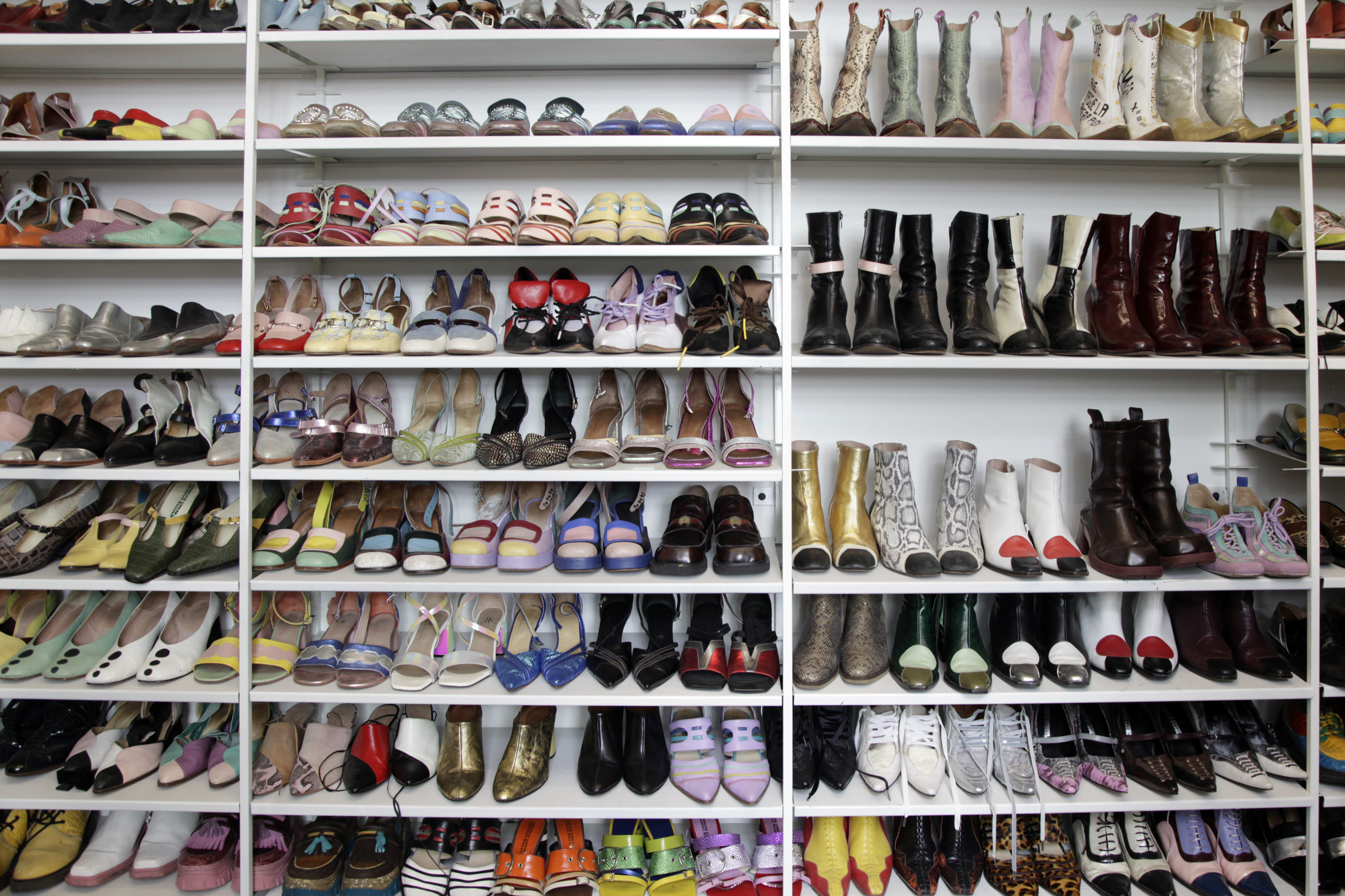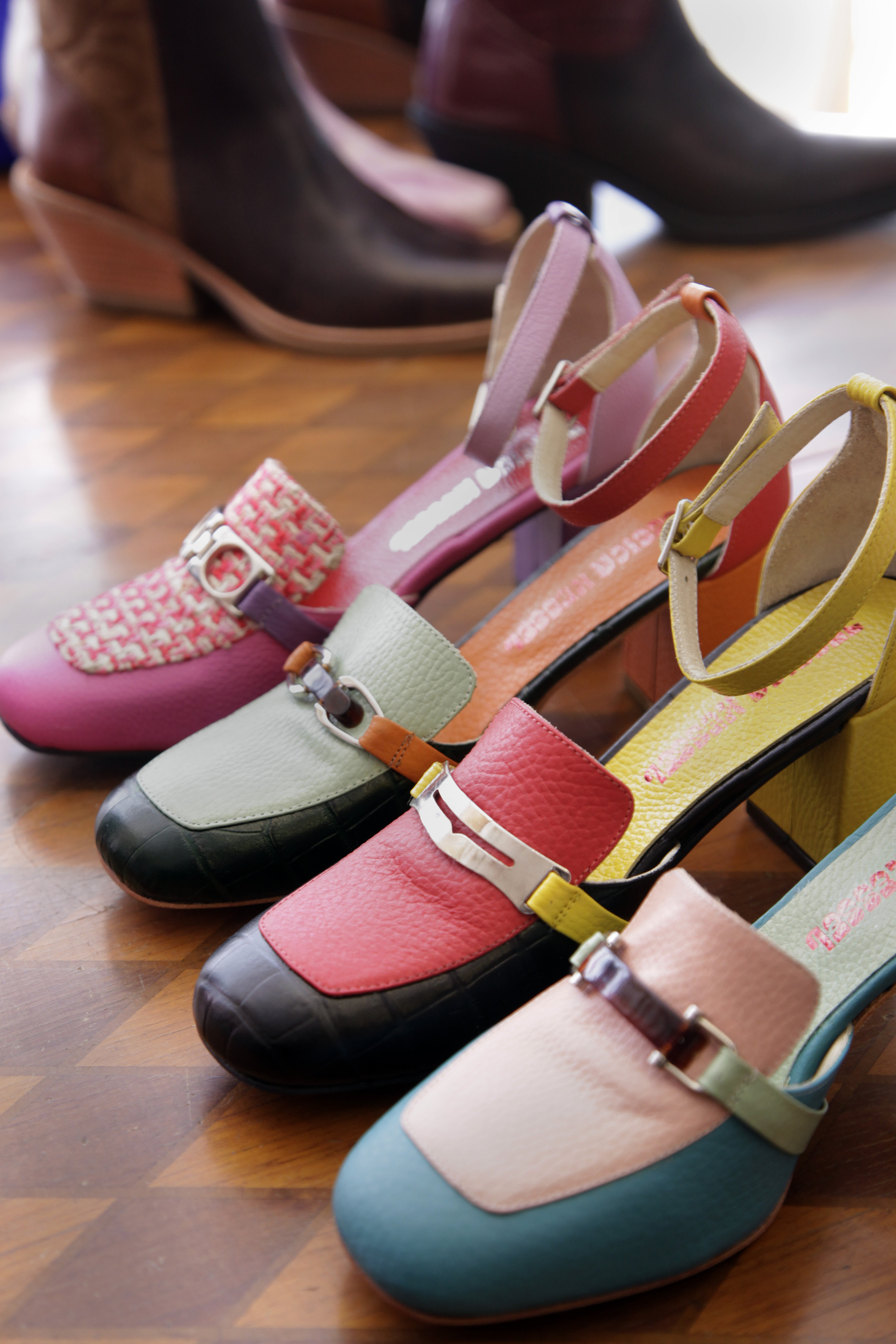 Yo tenía un problema con los zapatos. Grave (risas). Me paraba en frente de una vidriera y moría. Siempre busqué combinaciones particulares, colores intensos o algo desde el diseño que sea disruptivo. Y tenía mi colección de zapatos. Cuando empecé a fabricar, a veces me pasaba de usar un par que no eran míos y me decían: “ai, ¿esos los hiciste vos?” Y era como, mmm, no. Fui haciendo cada vez más zapatos y los zapatos que quería usar, en las combinaciones que quería usar, entonces dejé de usar zapatos de otros. Hay una realidad, y es un poco una excusa pero también una realidad, que pruebo todos los zapatos que hago. Ahí empecé a coleccionar los zapatos que hacía.