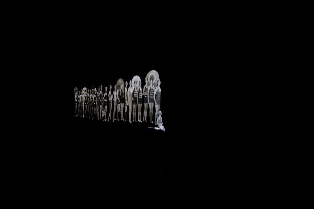 «La sala principal, de 500 m², está a oscuras. Es solamente iluminada por la luz que emiten las inmensas fotografías proyectadas sobre las paredes. Imágenes que se cambian de lugar, se mueven y repiten, según desde cuándo y dónde se las mire. Sin seguir un guión curatorial determinado, más allá de algunos conectores temáticos, la exposición le permite al espectador armar su propio recorrido…»