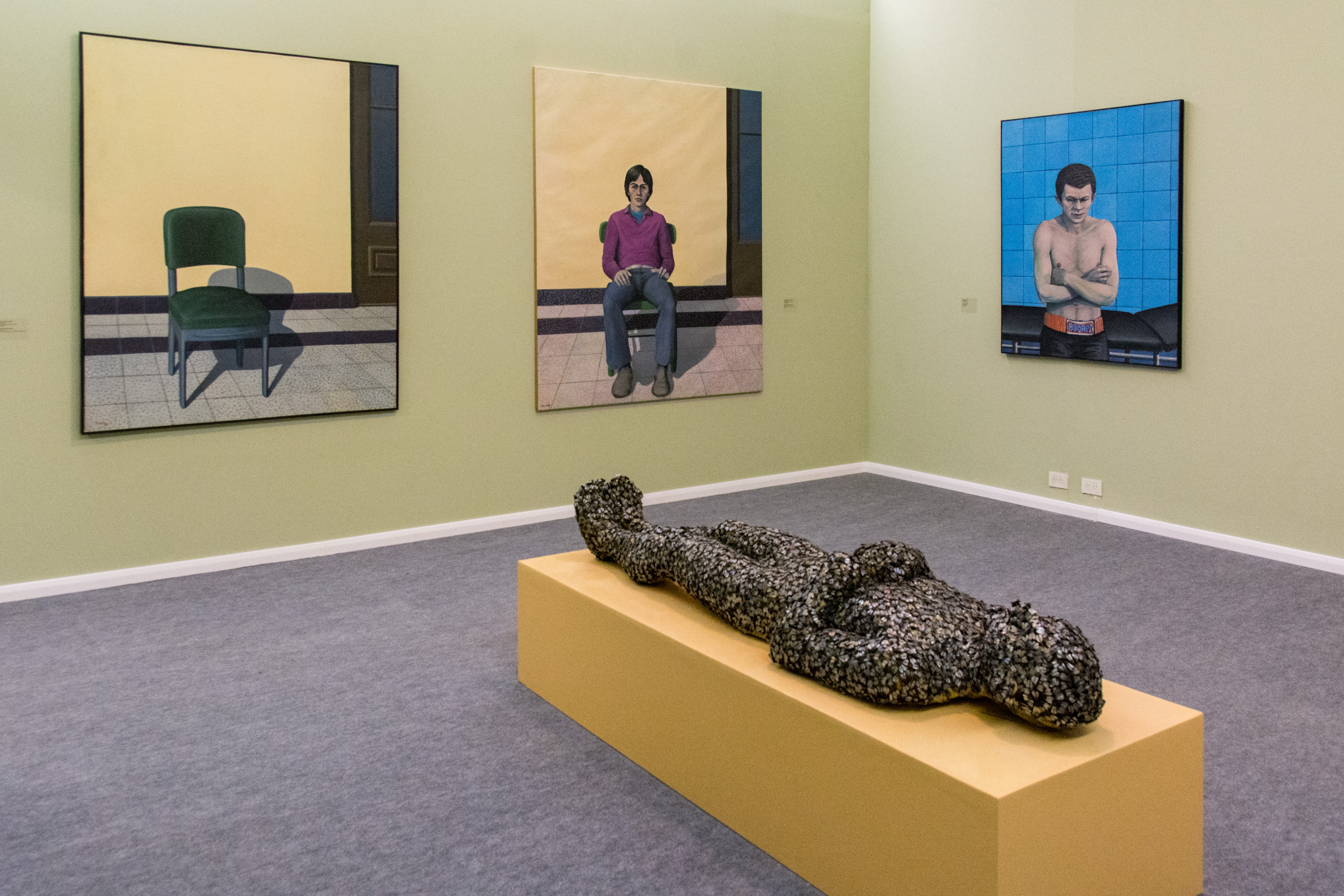 Dividida en tres salas que parecerían exponer a tres artistas distintos, la verdad es que hay quienes prefieren una parte de la exposición sobre otras. “Esto ya me gusta un poco más”, escuché murmurar en confidencia entre dos visitantes al llegar a la tercer sección. El primer encuentro se da con aquel Suárez de los sesenta y setenta, opuesto a la vanguardia radicalizada propia de la época, y tras renunciar públicamente a participar de Experiencias 68, la exposición del Instituto Torcuato Di Tella. Unos pasos más adelante, los personajes que caracterizaron la obra ochentosa del artista toman protagonismo. Una mujer semi desnuda comiendo una banana, una joven asomándose desde la ducha e incluso el emblemático Narciso de Mataderos, obra que resume la muestra completa, se distinguen entre pinturas y dibujos.