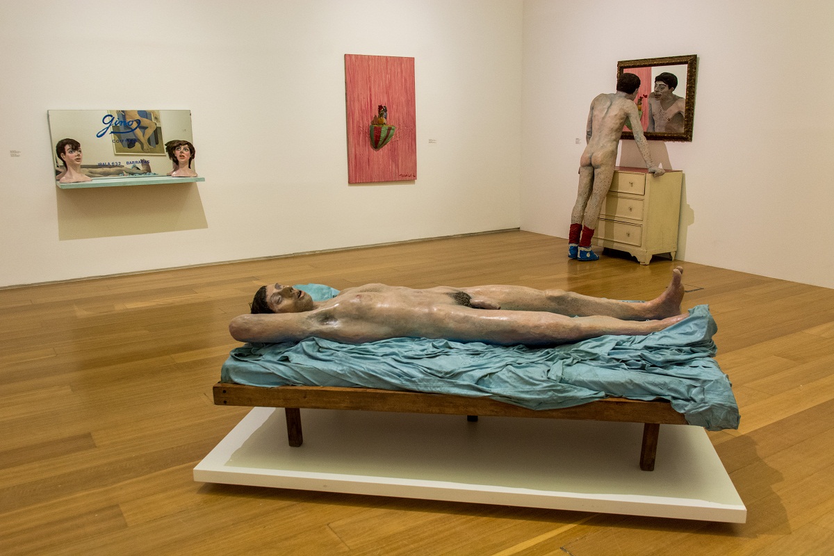 Madera, telgopor, una cortina de baño plástica, espejos, yeso, muebles, hierro, cobre, aluminio y luces led. No, no estoy hablando de los componentes de una casa. Se trata de una ecléctica e inesperada lista de materiales utilizados para confeccionar las cien obras que hoy habitan el salón principal del MALBA. “Narciso Plebeyo” es la muestra que relata en pinturas, dibujos, objetos y esculturas una retrospectiva del artista argentino Pablo Suárez (1937-2006) curada por Jimena Ferreiro y Rafael Cippolini.
