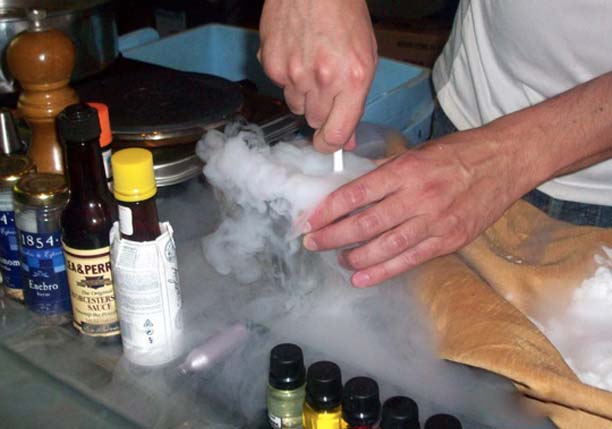 En el taller de mixología de tragos (atención: nunca ingerir el hielo seco)