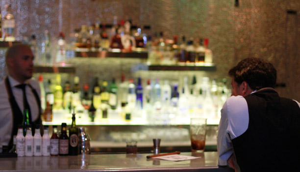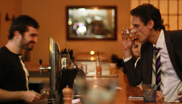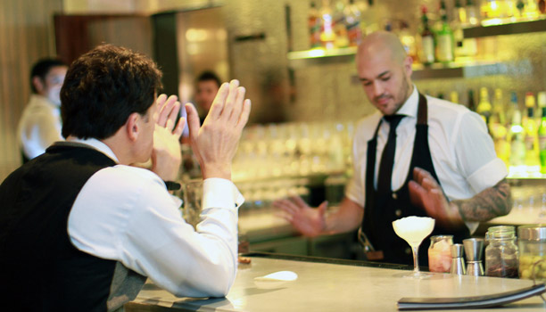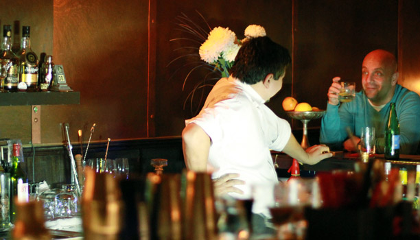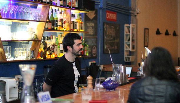 El bartener Federico Cuco (de espaldas) dándole charla a un cliente solitario (y todo bien)