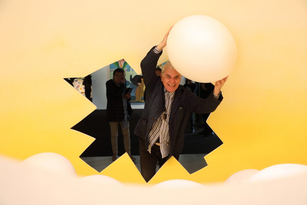 Con misión declarada, hace más de un mes que bajo el techo de Eduardo Costantini guía con su fiesta y, sin las consecuencias de la resaca, grita que adoptemos su leit motiv más allá de la prolongación de la muestra. “Yo festejo todos los días. Soy agradecido de estar vivo, de estar en este planeta, de hacer lo que se me da la gana y de vivir acorde con mis principios”, le enseña a MALEVA.