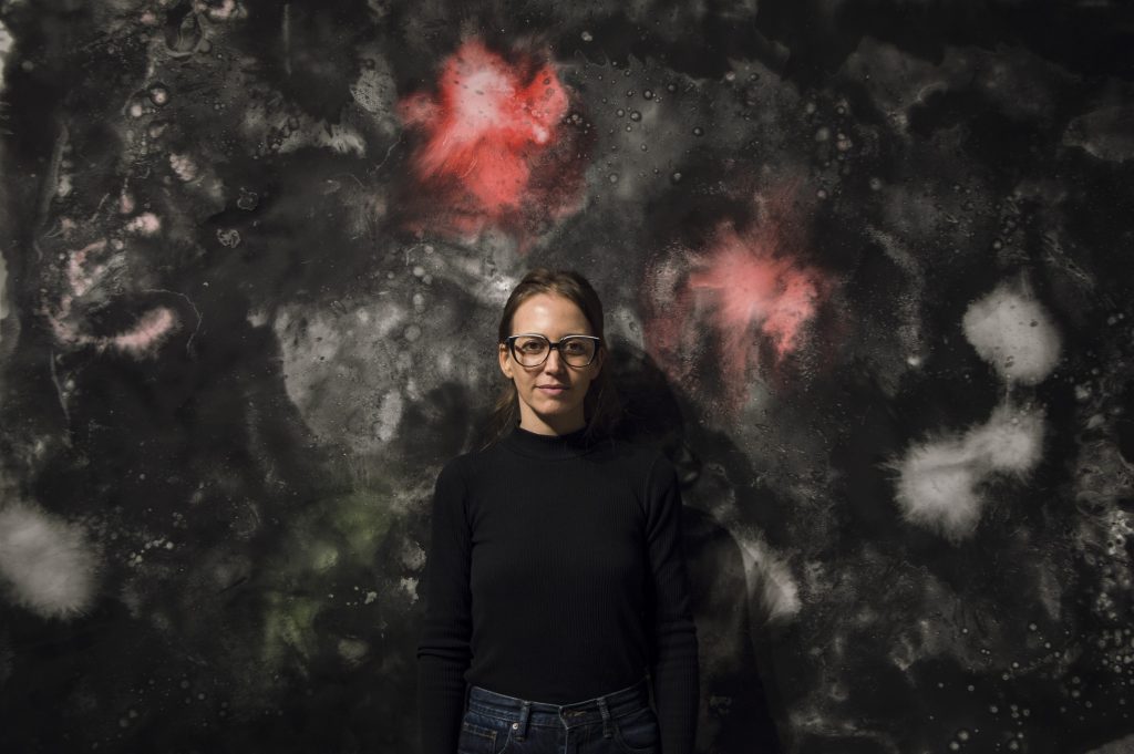 Mariana Sissia es artista, astróloga y tarotista. Trabaja con grafito y solía concebir su creación artística segmentada en dos grandes formas. En sus palabras, una es programada, minuciosa y controlada versus una abierta, expansiva y libre. Esto se daba en simultáneo dentro de su taller pero al exponer las imaginaba como cosas diferentes, hasta La conjunción. Esta muestra se ocupa de presentar y encontrar estas dos caras de la misma moneda, en donde el material es el punto de unión que permite el desarrollo de un diálogo profundo. Diálogo que presenta “distintas formas de entender la realidad” nos lo describió Clara Ríos, su curadora.