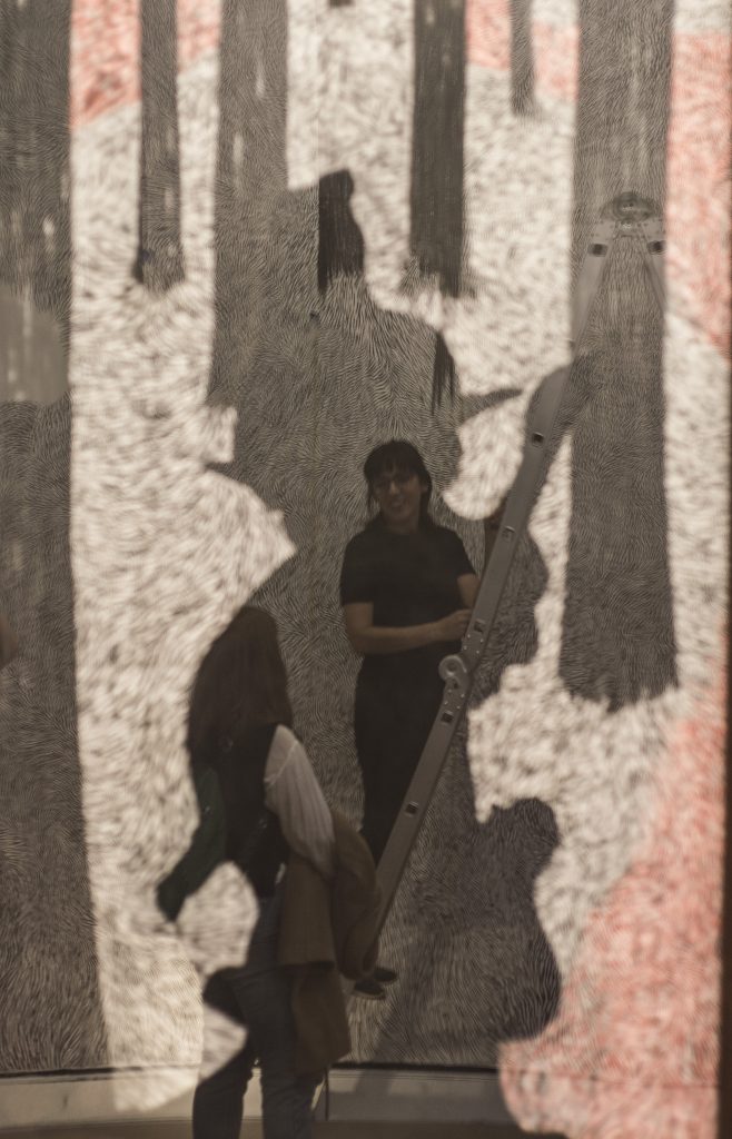 “En esta acción de repetir incansablemente el gesto mínimo, la artista se sumerge en lo que algunas técnicas de meditación llaman al proceso de afilar la mente sutil” nos contaba Carolina Cuervo, su curadora.