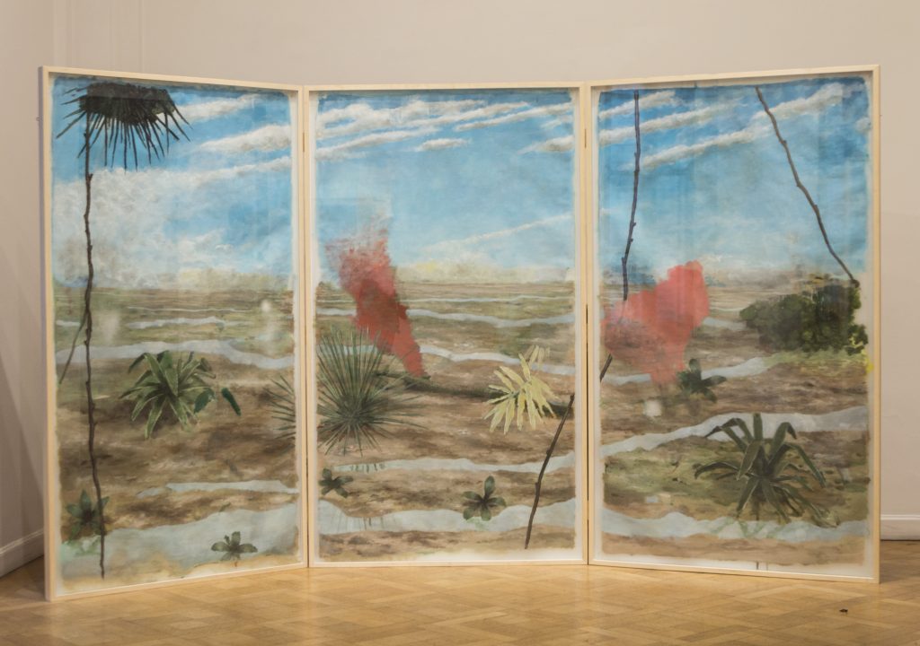 El ver su trabajo exhibido en las paredes de Aldo de Sousa, nos acerca a la imagen de su universo, la charla con su galerista nos invitó a intentar comprenderlo y el acceso a su material escrito y bibliográfico nos brinda contexto e intensifica la experiencia.