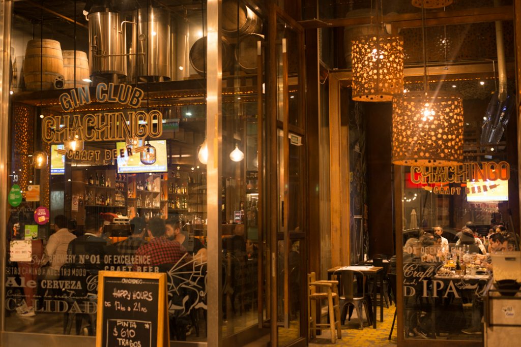 Chachingo lleva la impronta del premiado enólogo Alejandro Vigil y su nombre hace referencia al terroir donde se producen las cervezas. Este bar de craft beer fusiona una estética típicamente cervecera como metales, óxidos, instalaciones y tuberías entrelazados, pilones con canillas y mucho bronce industrial.