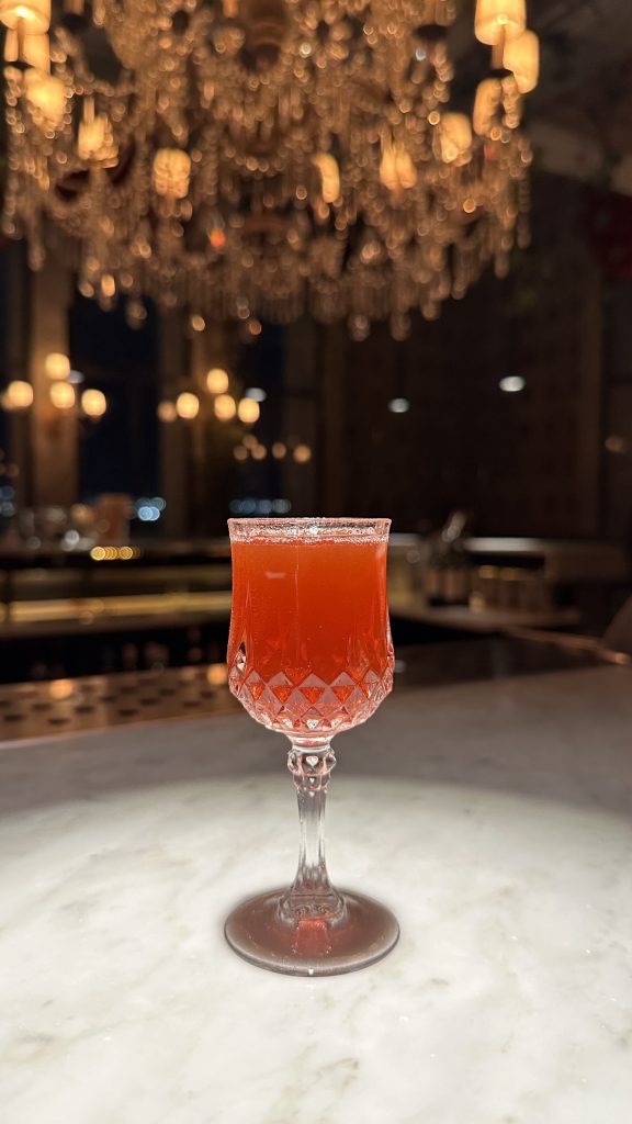 En abril de 2024 Gómez Rooftop cumplió su primer año en el último piso del emblemático Edificio Gómez, declarado Patrimonio Nacional de Arquitectura. El interiorismo del bar fue diseñado por el artista visual Sergio Roggerone y sin dudas, lleva su impronta. Lámparas antiguas – incluida una central repleta de caireles -, muebles de estilo, cortinas rojas y la presencia del dorado le dan vida al rooftop más visitado del momento.