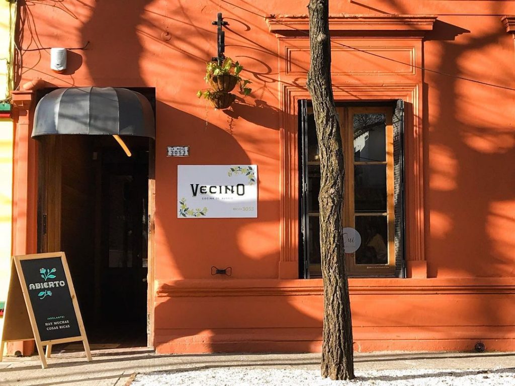Una casa antigua con un salón principal al que le entra luz natural, otro espacio un poco más cerrado y el patio más lindo de la zona, son las tres opciones que ofrece Vecino para disfrutar un desayuno, brunch, almuerzo, merienda o cena. “Estábamos buscando un espacio dentro del barrio donde estemos cerca del vecino”, cuenta uno de los socios, Francisco González Chiappe, sobre la elección y el concepto del lugar.
