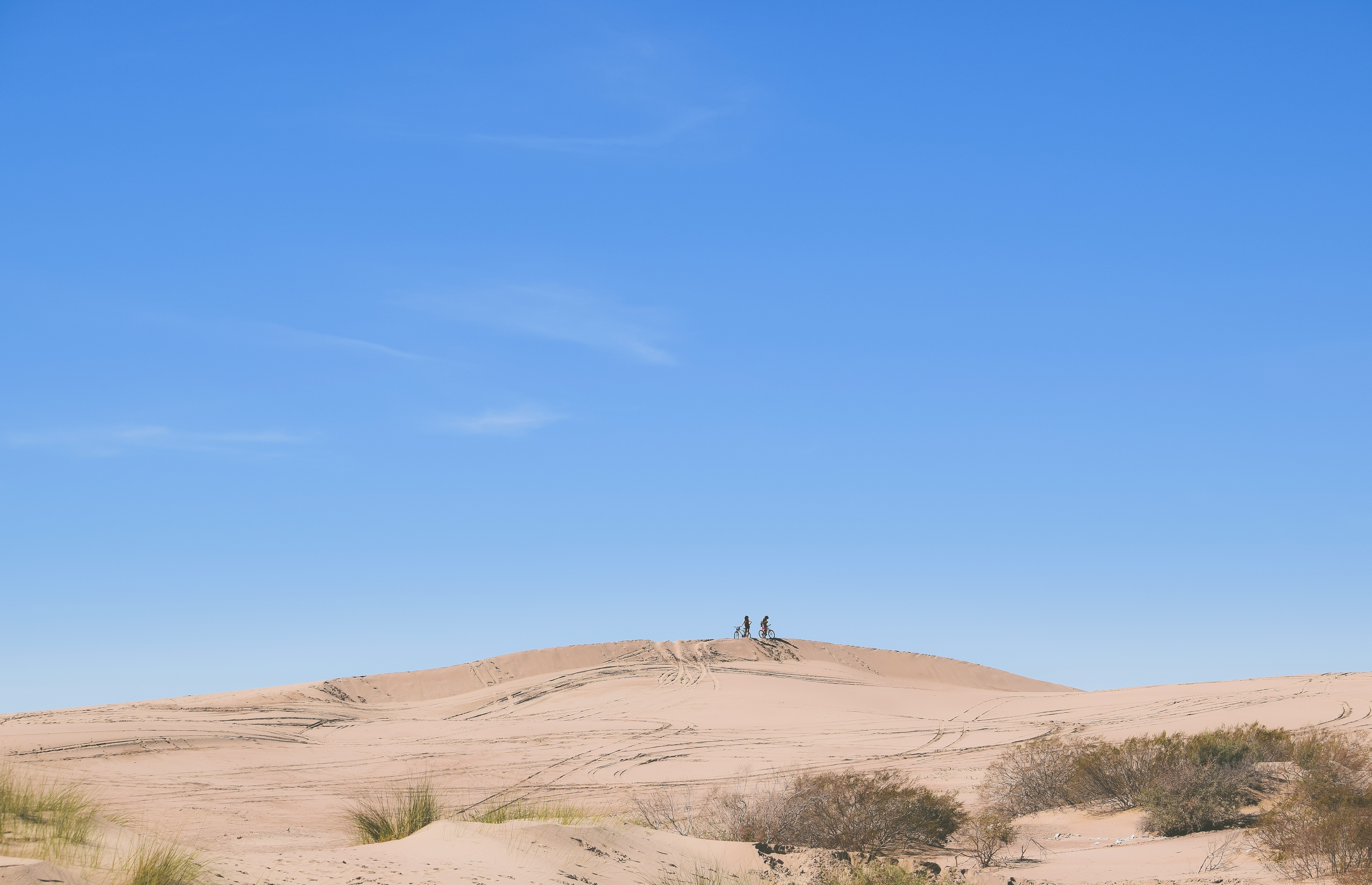 «En verano por ejemplo las temperaturas suelen ser bastante altas y el sol cae después de las nueve, por lo tanto vamos un rato antes del atardecer para poder contemplar ese preciso momento, en la parte mas alta de uno de sus médanos…»