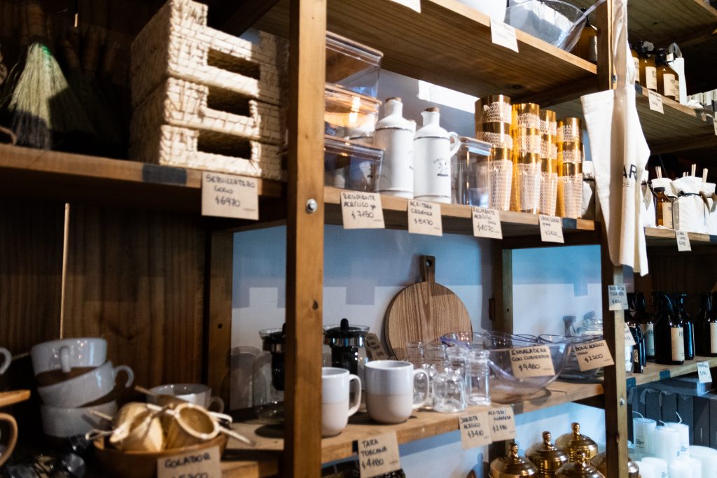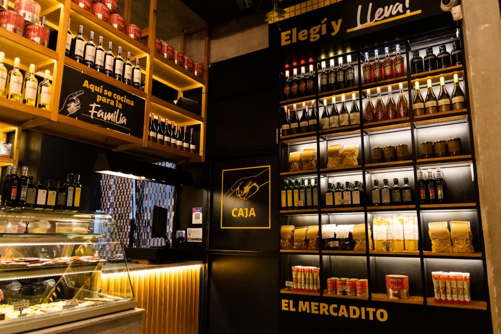 Al cruzar la puerta principal de Padella e ingresar a la planta baja del local, la mirada se pierde en un almacén y fábrica de pastas, en dónde además de vender productos, se exhiben las salsas, pastas y bebidas que después serán usadas para preparar los menús del restaurante.