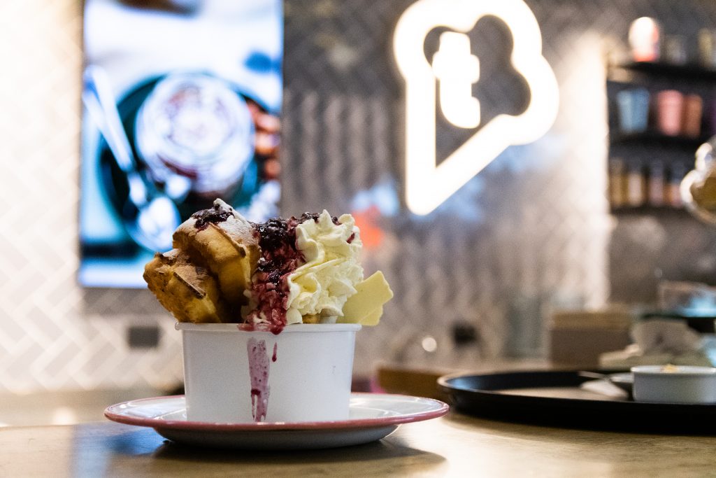 En un primer momento, la propuesta funcionaba únicamente como heladería. Ahora existe una amplía oferta que invita a desayunar y merendar, con opciones que varían desde cafetería hasta pastelería con macarons, tortas, postres y bombones dignos de una chocolatería suiza.