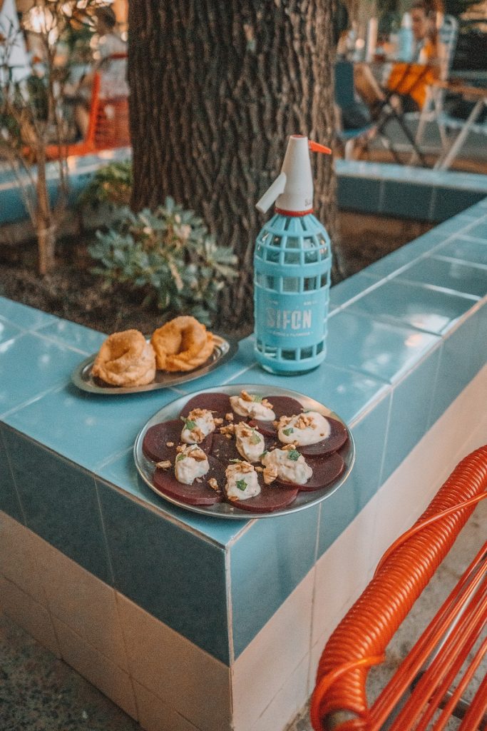 Además, los refrescantes tragos y las entretenidas charlas vienen con un tercer complemento clave para el atardecer perfecto: appetizers y platitos para gozar entre burbujas. Hacé lugar en la mesa para las más variopintas preparaciones recién salidas de las calientes planchas de Sifón. Si tenés antojo de gastronomía «yankee», acá podés pedirte un buen sándwich de bondiola braseada con coleslaw, pepinillos y mostaza. Si, por el contrario, se te hace agua (con gas) la boca por un clásico argento, probá las empanadas fritas de osobuco. En Sifón, la carta es corta pero osada. ¡Nada que una soda no pueda afrontar!