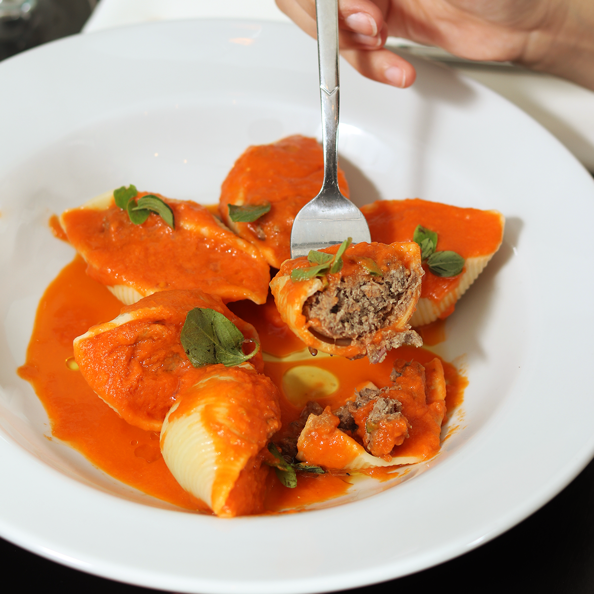 Si bien la figura destacada en Cincinnati son las pizzas de estilo napolitano, su menú también propone platos de la cocina mediterránea que no hay que pasar por alto. El plato de esta temporada son sus Conchiglioni di agnello: una pasta cortada en forma de caracol grande con un untuoso relleno de cordero de cocción lenta (braseado junto a cebollas, morrones, zanahorias, ajo y vino tinto) con salsa pomodoro italiana y hojas de albahaca fresca que equilibran el sabor.