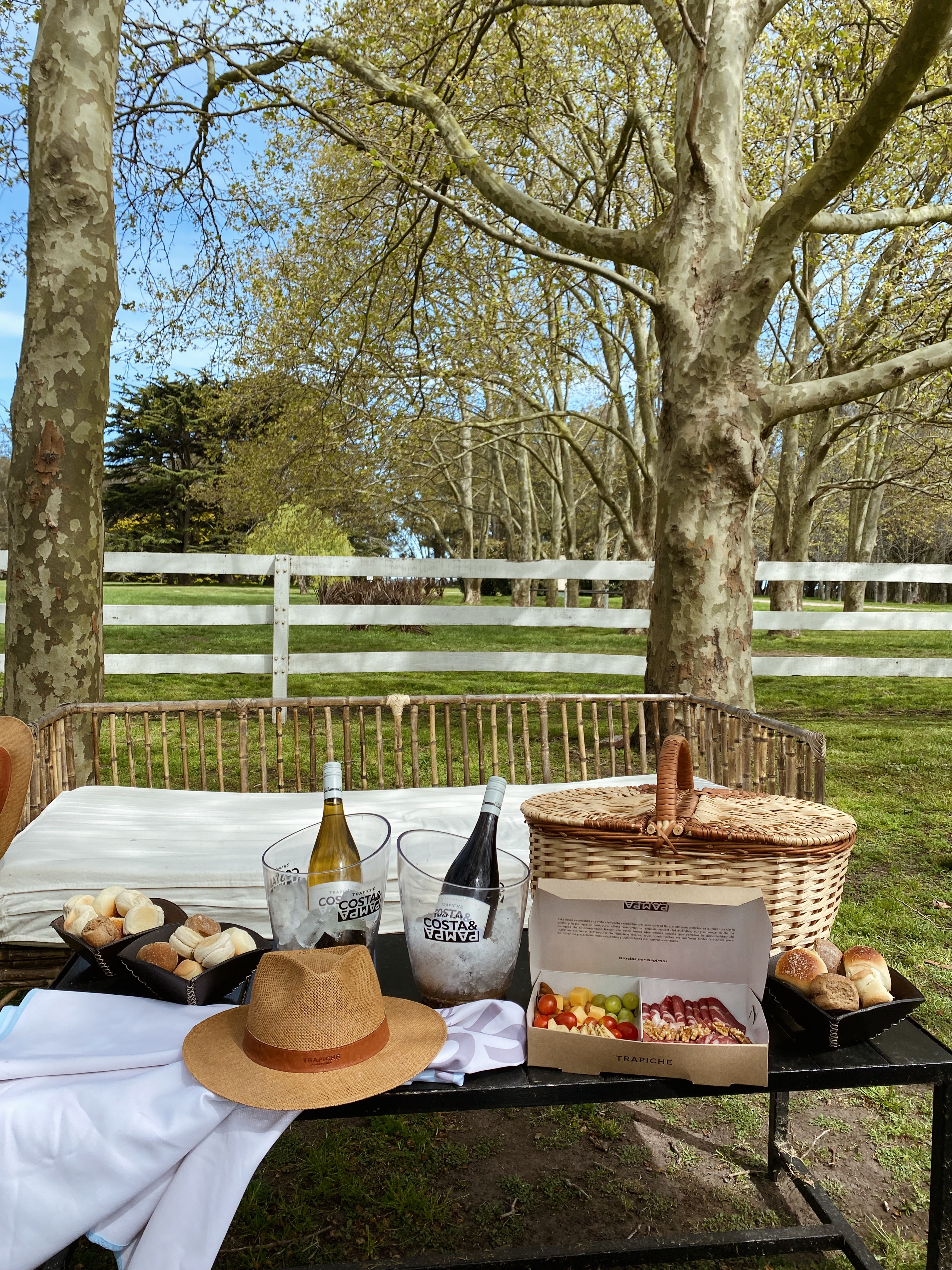 Recibís una canasta y una lona para disfrutar de la picada de quesos y fiambres, una botella de vino y chocolates para coronar. Mientras, los árboles haciendo media sombra, los caballos de fondo, el sonido de los pájaros y la calma absoluta, remiten a un clásico día de campo. Es que Costa & Pampa es un blend entre tres experiencias distintas: el campo y su frondosidad, el aire de mar, y los viñedos mendocinos.