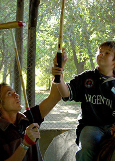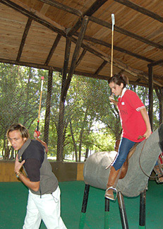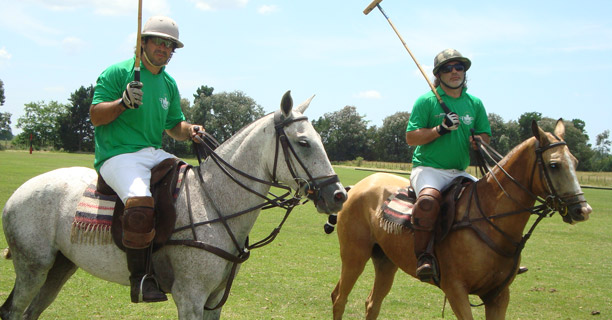 Aprovecho el interludio para hablar en exclusiva con Emiliano Blanco, dueño de la estancia y polista profesional que jugó doce años en los Estados Unidos, seis de ellos encargado de un club donde daba clases. Con el tiempo, decidió traer esta propuesta a la Argentina. “Cualquier persona puede jugar al polo, no tiene que estar preparada físicamente porque es un deporte más técnico que físico. Es necesario poseer un mínimo conocimiento y no tenerle miedo al caballo, aunque sí respeto. Yo tengo un cliente de 70 años y juega muy bien”, explica Blanco de 37, y agrega: “El polo es un deporte muy individual, cuando te contratan no lo hace una institución como en el fútbol sino una persona particular. Lo que yo decidí hacer es darle sociabilidad”. Blanco revela a los visitantes que un partido de polo requiere de mucho esfuerzo detrás de la cancha: “Para lograr 28 minutos, que son los cuatro chukkers (tiempos) que jugamos nosotros, hay un esfuerzo de caballos, petiseros, herreros, pastura, fertilizante para las canchas, todo se tiene que aprovechar al máximo. Soy demasiado exigente con la clínica y las clases teóricas porque la idea es sacar lo mejor. Después del partido tomamos mate en la pileta, pero antes nos juntamos en la caballeriza a hablar con el equipo, tener una estrategia”.