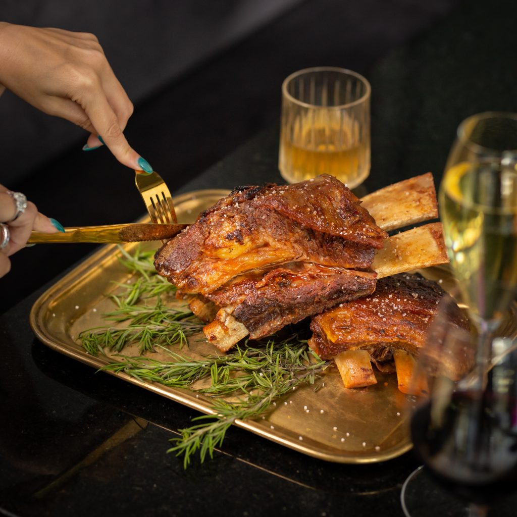 Lo anterior se sella con hierro y fuego tanto en el nombre del sitio en cuestión (para quienes no están al tanto, “El Dorado” era una disco hito del momento), como en la vajilla de esta puesta en escena, cuenta Germán. Acá se optó por servir cada plato en ni más ni menos que fuentes de porcelana con filo de oro. ¿Qué se puede ofrecer en cada una de estas? Sabores y aromas ultra noventesos, como aquellos de la entrada que incluye salmón rosado, berro, melón, miel de caña y una emulsión “verde”. Los tragos, por su parte, presentan la misma esencia. El “1 a 1” es el especial de la casa, sin titubeos. Este trae gin, sauco, hucatay, limón, y espumante (claramente). Todo un concepto de goce y glamour, se condensa, se bebe y se come en un bistró…. ¡en Puerto Madero! ¿Qué más “90” que eso?