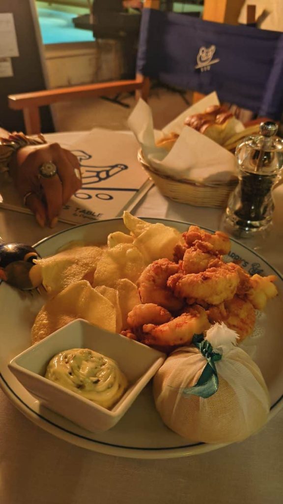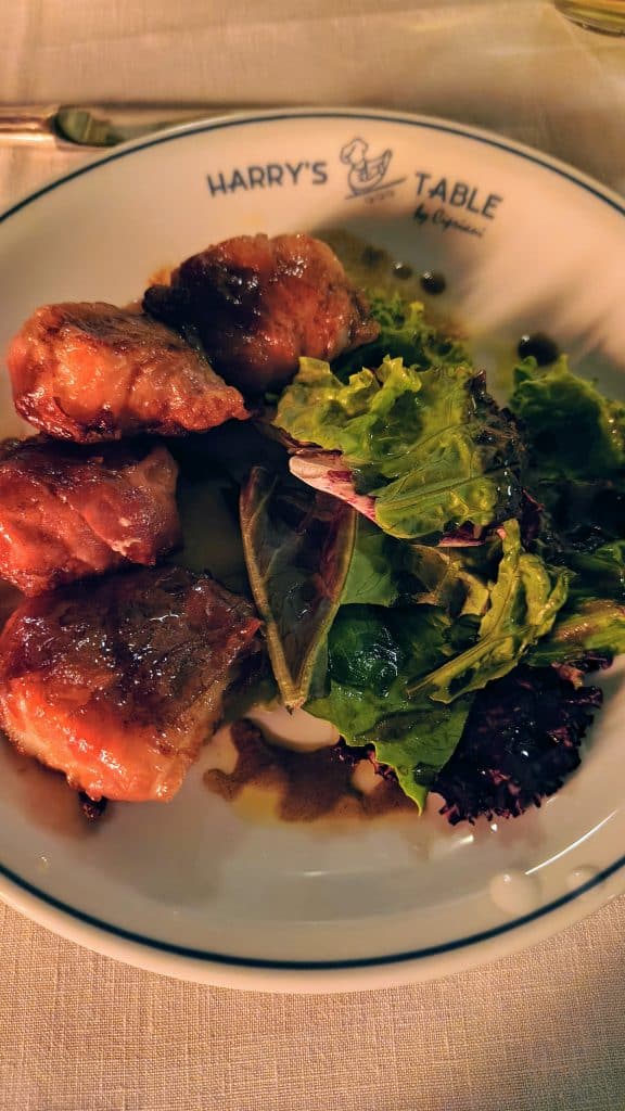 Nos gustó tanto que a la noche no lo dudamos: nos quedamos a cenar. Cocina con tradición italiana y espíritu esteño comulgan en el nuevo Harry’s Table de La Barra. La propuesta gastronómica propia del hotel no es nada más ni nada menos que una nueva sede en Sudamérica del emblemático restaurante de Cipriani. Toda la experiencia es gloriosa, desde el servicio a cargo de un staff ultra capacitado (60% de ellos son italianos y el resto son profesionales de todo el globo, desde Uzbekistán a Dubai) que hace de cada contacto con el comensal un ritual de etiqueta a los sabores clásicos de la gastronomía mediterránea. Empezamos con un plato inolvidable, que figuraba en la carta en la sección La voz del cocinero. Eran unas vieiras bestiales envueltas en jamón de Parma y balsámico. Una locura la combinación e intensidad de ingredientes. Al toque llegaron las gambas fritas con salsa tártara, una sugerencia que estuvo por demás acertada. De principal, quería pedir unas pastas, así que fuimos por los spaghetti bogavante. Entonces se lució el Albariño uruguayo. Y terminamos con un panettone Cipriani con crema de mascarpone. Sí, hubo café.