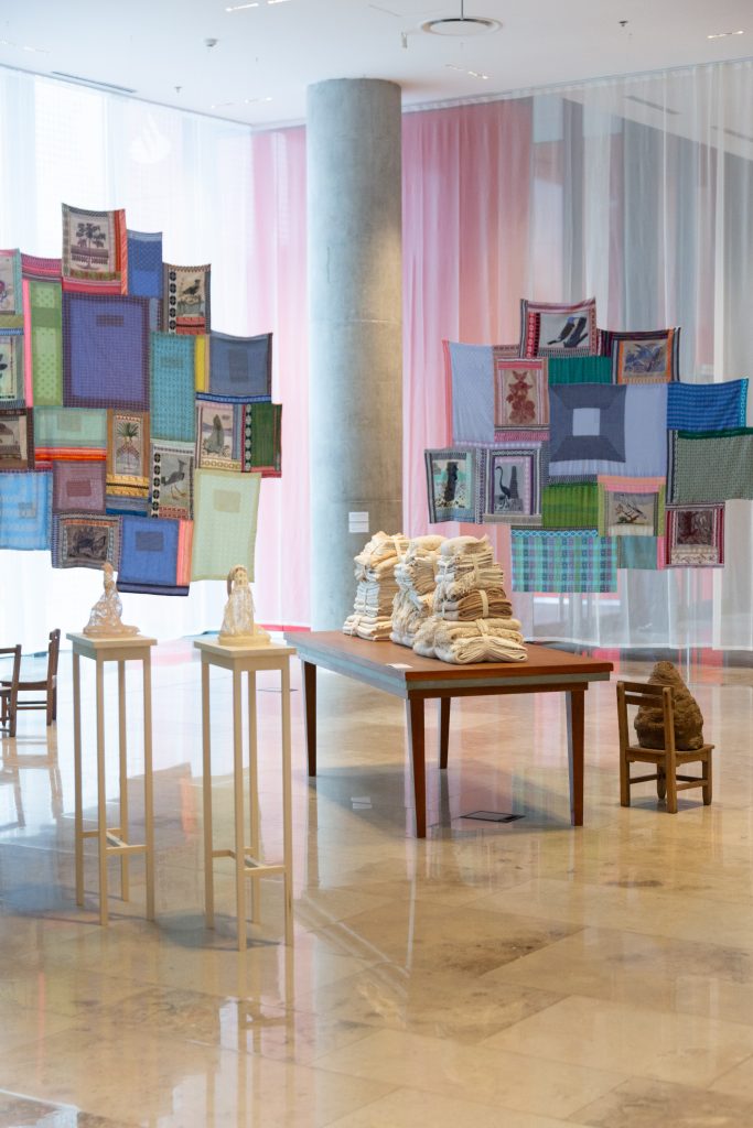 La muestra en la Fundación Santander es también un homenaje a las tejedoras con las que Mónica trabaja su arte, sus «grandes compañeras».