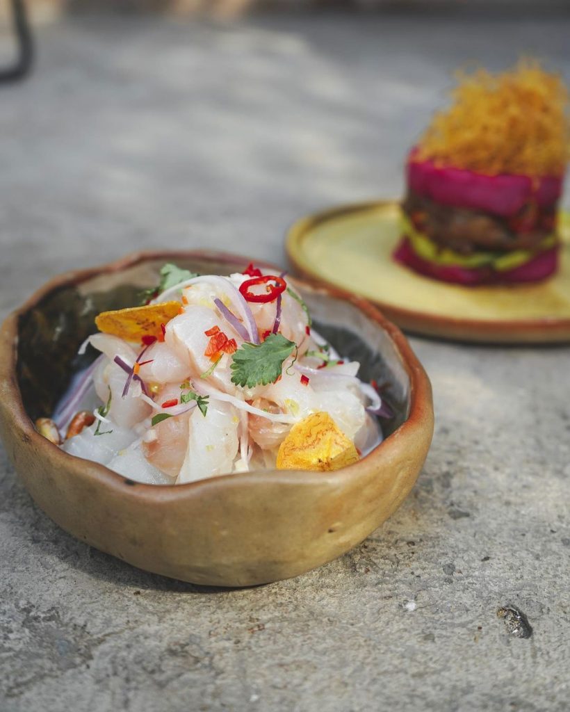 Los ceviches de Amazonia y su oferta gastronómica que combina sabores de Perú y Brasil, recetas venezolanas y carnes argentinas, a las brasas. El ceviche selvático trae salmón, cebolla morada, y gazpacho de maracuyá. El amazónico, lleva corvina, cebolla morada, leche de tigre con frutos de la selva y chips de plátano. Son una delicia. Los tragos frutales también son un must. Además, la decó es una pinturita; hay un mural marino por Catalina Ruiz y una ambientación y lámparas que te hacen volar, sin escalas, a la selva latina.