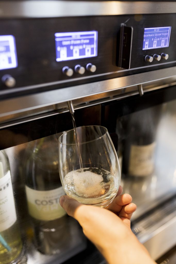 Desde la estación, explican: “Acompañamos a nuestros clientes a servirse directamente a nuestros wine dispensers, tenemos medidas distintas, 120 o 180 mm… Son distintos niveles de copa, según si uno quiere catar varios o acompañar una comida”. ¡Atentos que hay 42 variedades de vino! Y los sommeliers te indican cómo maridar tu plato.