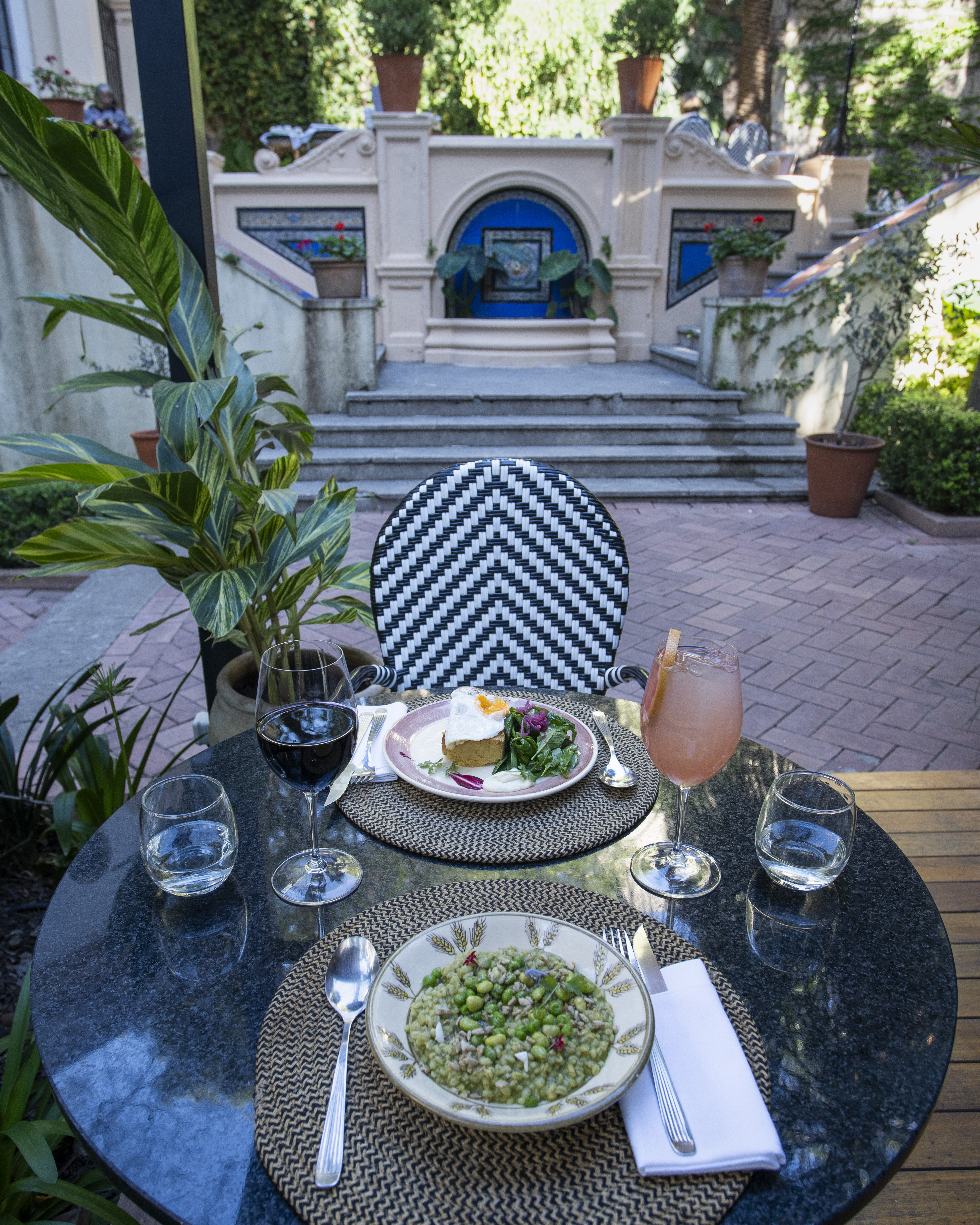 1) Los jardines de las Barquin: un refugio gastronómico alucinante – entre palmeras y mosaicos – con una carta que homenajea épocas doradas / Suipacha 1424.