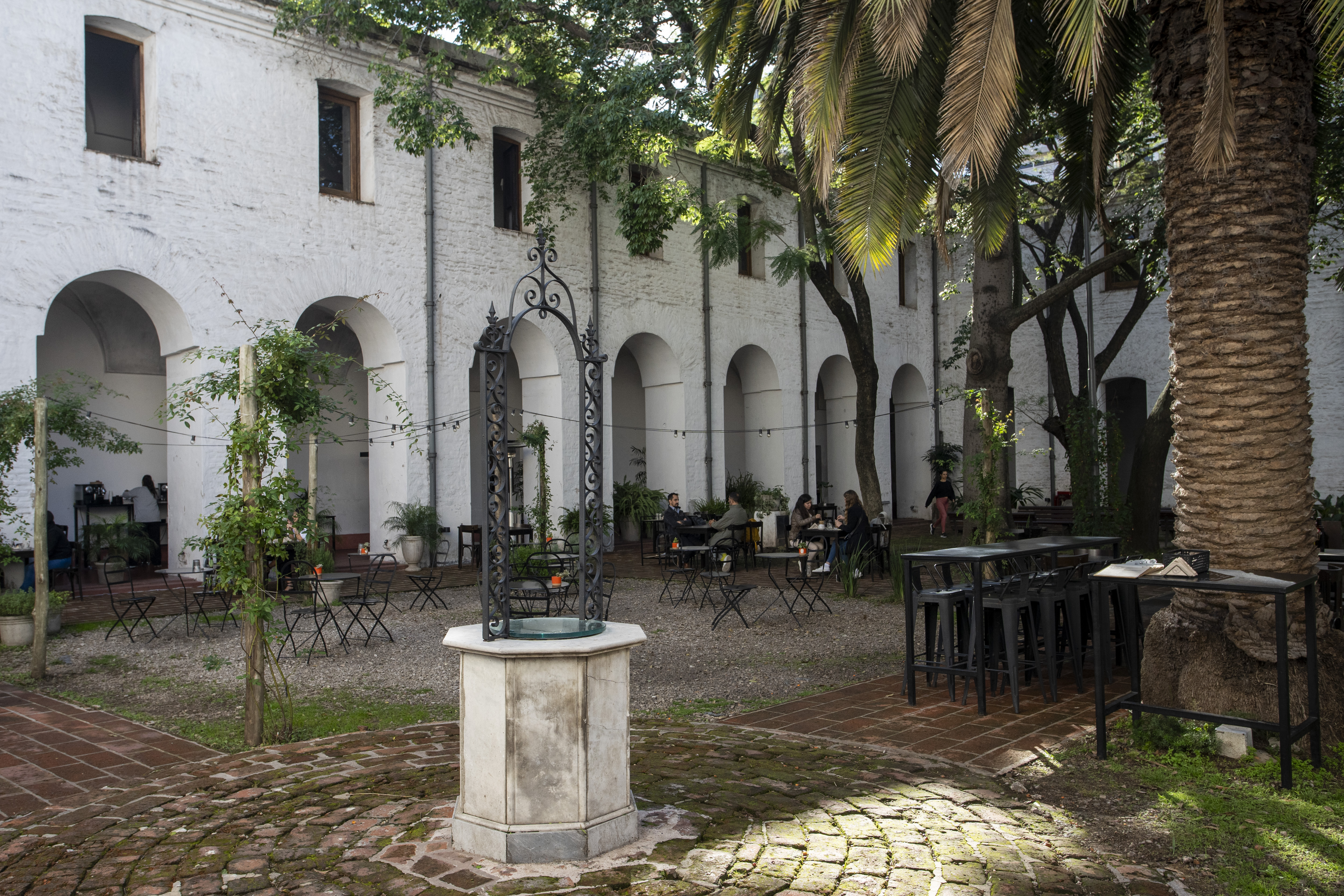 Cruzar el umbral de la puerta es volver un poco hacia ese 1745, el año en que empezó a funcionar el monasterio de Santa Catalina. El umbral apaga en un segundo el ruido de la ciudad. Su patio central es un amplio refugio natural, decorado con su aljibe original, mesitas esparcidas bajo los árboles históricos y en sus 360 grados: los arcos de entrada al edificio donde vivieron las primeras monjas de clausura de Buenos Aires.