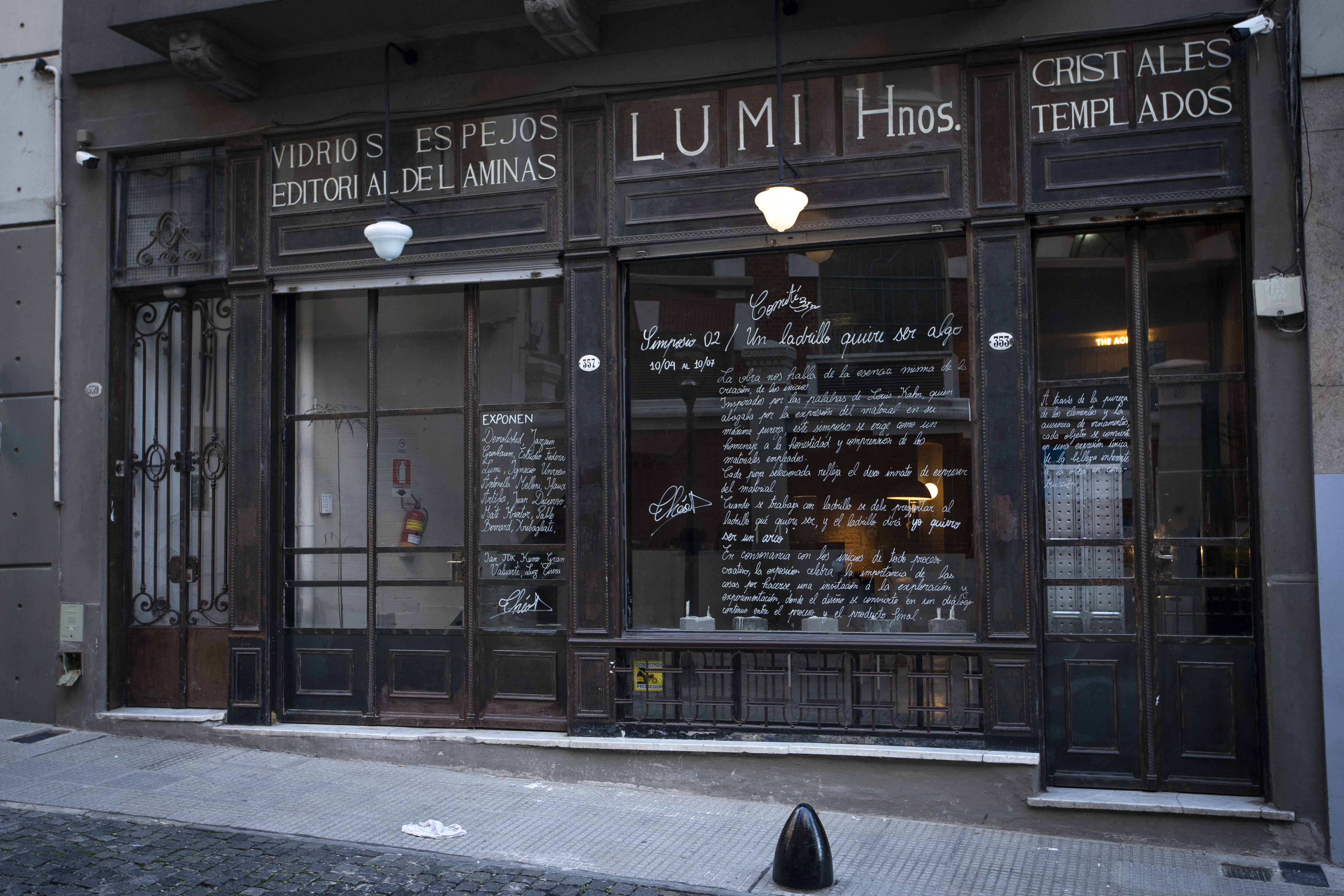 Cae la tarde y la callecita adoquinada Tres Sargentos se empieza a llenar. Vasos de vino en mano, puchos, charlas que van y vienen y de fondo; un local que parece sacado de una película de época. Arriba, un cartel lee “Lumi Hnos.”, hay escritos en blanco sobre el vidrio, y velas sobre la ventana. Una fachada que a leguas genera mucha curiosidad. Comité 357 es difícil de definir. No se encasilla en una galería de arte o en un centro cultural. “Es un espacio donde converge el arte, el diseño y el vino”, nos cuenta Mayda, una de las creadoras de esta unicidad. “Funcionamos como una especie de neocolectivismo; hay mucha gente aportando cosas distintas al espacio”. Y siempre pasa algo.
