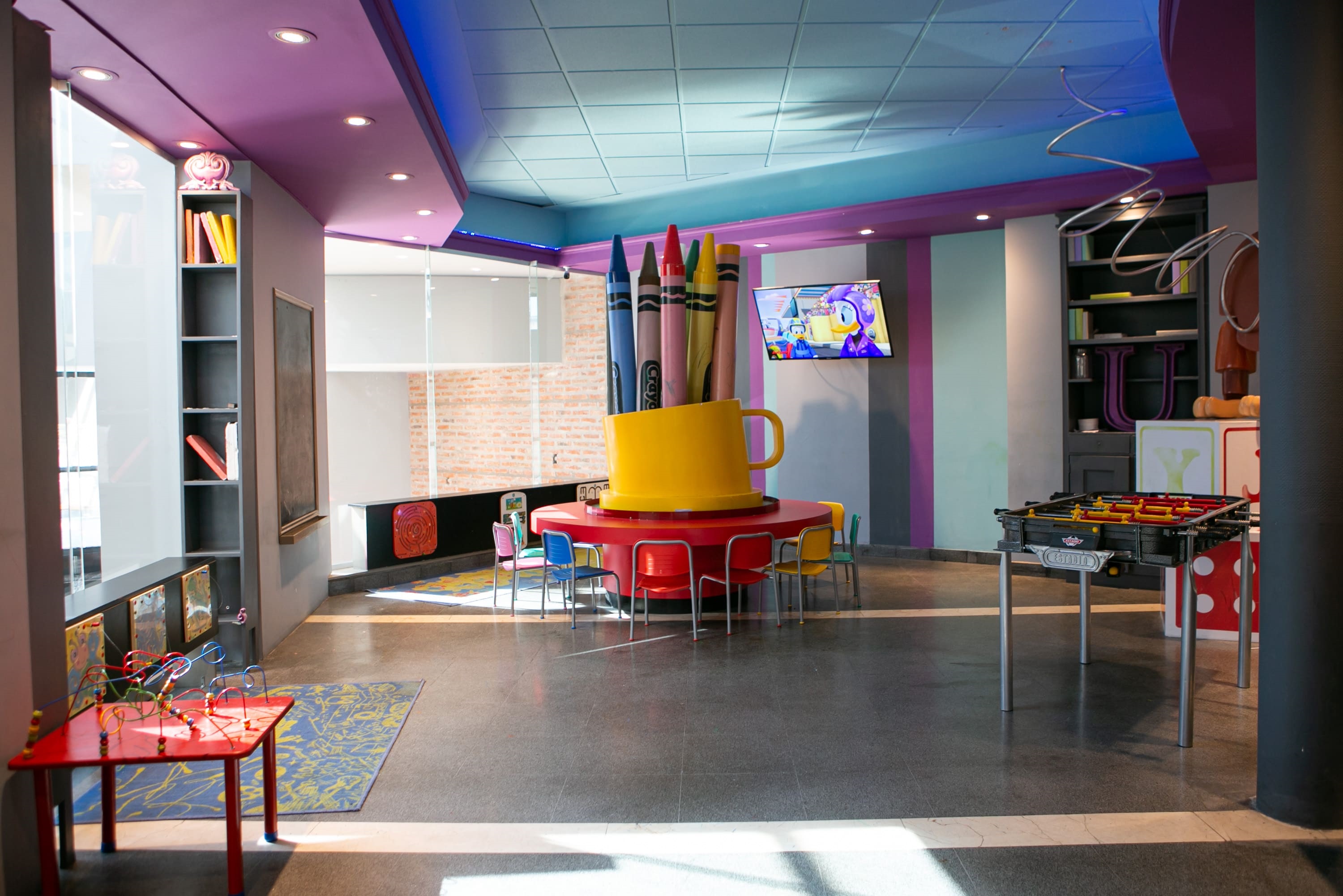 Este restaurante & cafetería de zona norte tiene en dos de sus sucursales el “Kid’s Club”, un área de juegos, de unos 50 m² para niños de entre 2 y 12 años. Con una estética cuidada, ofrece tablets, metegol, juegos de mesa y hasta un sector de arte (con lápices, crayones y pizarras con tiza). Además, hay tres cuidadoras.