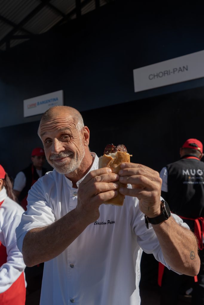 “Yo no dejería de probar (le dijo Christian Petersen a MALEVA), los huevos revueltos, un Gramajo porque es un plato muy nuestro, un tostado, una sopa de calabaza y, si sos bien de campo, un buen choripán. Para mí es un San Choripán, sos feliz si te comés un choripán. Es la grasa justa, el chimichurri lo hace perfecto, mas crocante. Se hace en la feria, ves las vacas, es algo muy de campo. El lema de La Rural es que el campo es mucho más que campo. Es esto: encontrarse, comer un choripán, charlar. Fíjate que toda la gente de campo se saluda, está charlando, festeja el encuentro…»