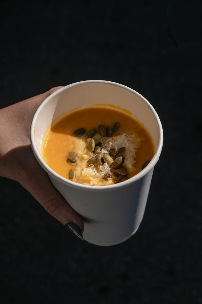 5) La Villa: con sopas y platos con huevos (revuelto gramajo, huevos revueltos). La Villa es una granja regenerativa, dirigida por Sofía Zelaschi, con producción sustentable y sostenible de limones, huevos de gallina de la raza lohmann, nueces y colmenas de miel. En este stand, la artista Bárbara Biolcati presenta una cápsula especial inspirada en este campo y su producción.