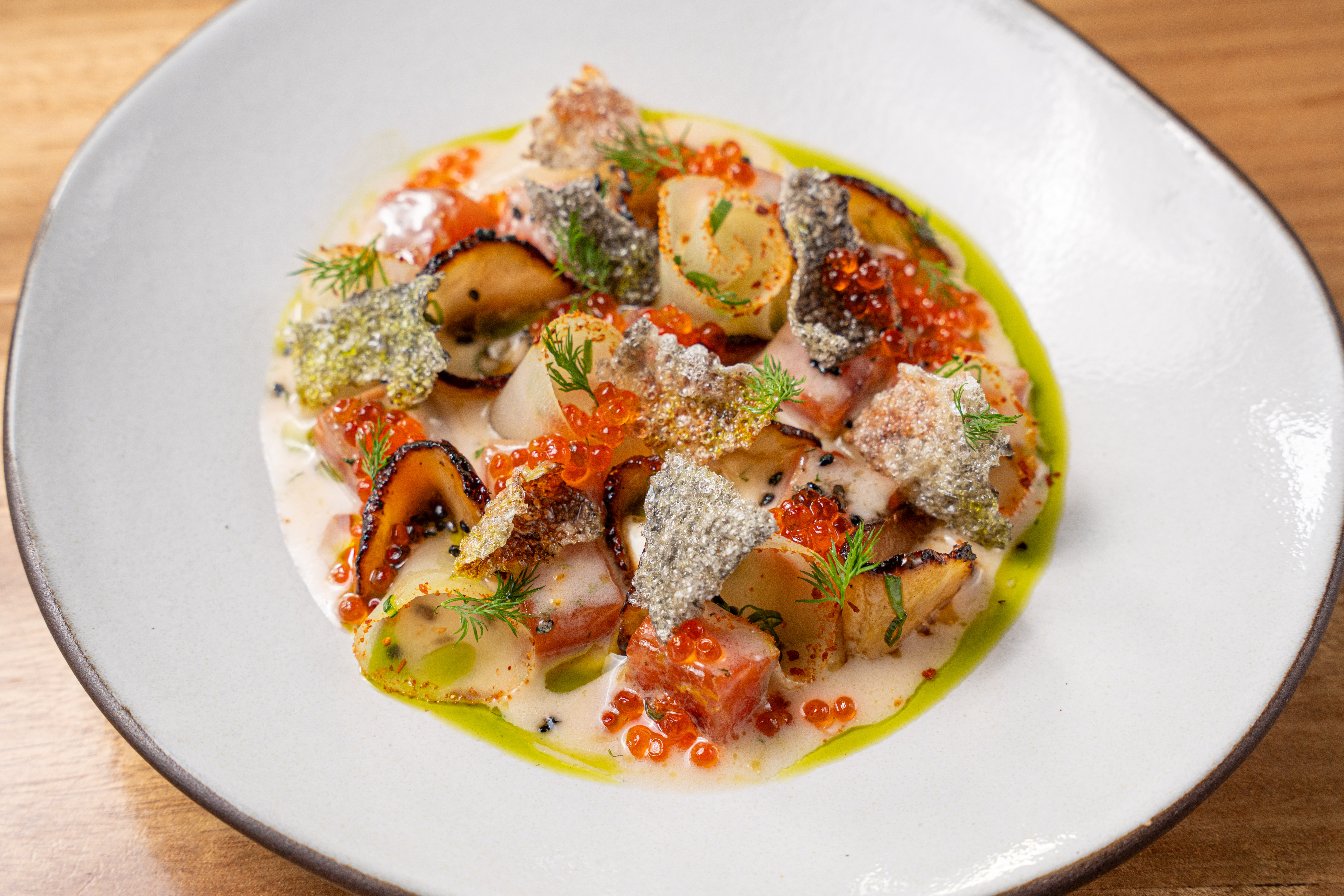 Su cocina es regenerativa de triple impacto. “Hablar de regenerativo es, no solo sostener y preservar, sino restaurar y recuperar, tanto lo natural, ecológico y social”, nos explica Agustín, quien está en una constante búsqueda de métodos de producción que sean respetuosos con el medio ambiente.