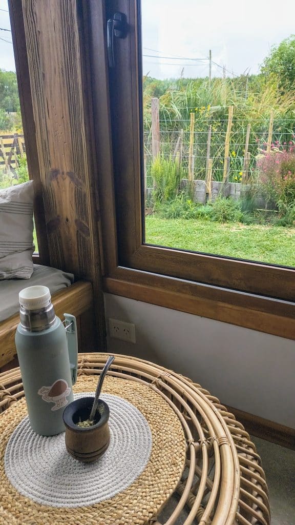 La Gracia te demuestra que la mejor tecnología está en la naturaleza. “El techo vivo además de ser lindo y natural le aporta a la casa una gran aislacion térmica porque se crea una cámara de aire entre las plantas y el suelo. Es acústico y se vincula con el entorno recibiendo insectos y pajaritos. Nos encantó la idea de que la casa se pierda un poco en el paisaje… En primavera se llena de flores y tenemos un deck para tomar unos mates y disfrutar de los atardeceres. Subimos con una mantita a ver las estrellas, me siento rica”, cuenta Georgina sobre el tremendo desafío de hacer un techo vivo.  Fue un tiempo de grandes aprendizajes, de valorar cómo se hacían antes las cosas. «Recuperamos un conocimiento que se perdió. Conocimos gente muy interesante que nos nutrió. Desde esa gratitud abrimos las puertas de La Gracia para que la gente pueda conocer cómo es vivir en una casita que levantamos con la tierra que pisamos. Hay muchos viajeros que quieren experimentar esto, que eligen lo artesanal.»
