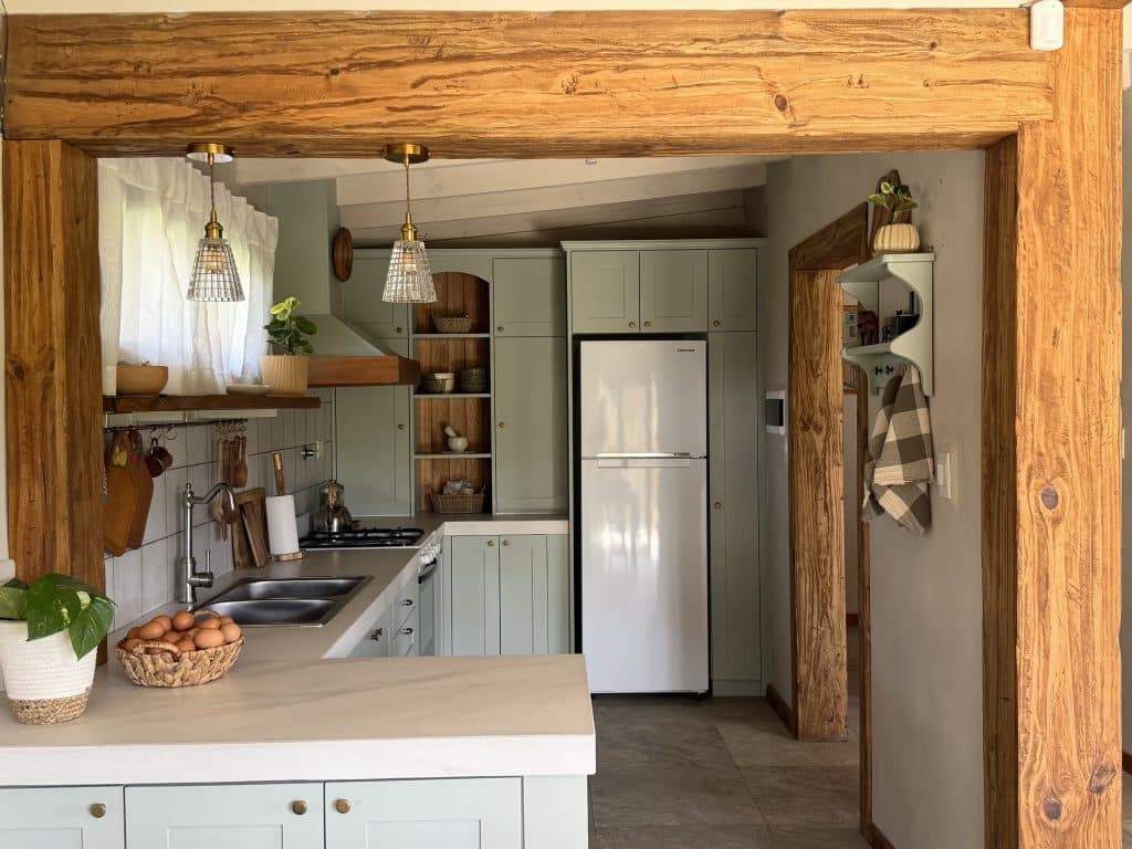 Los alojamientos sublimes son un rasgo distintivo de Cruz del Sur y la mejor forma de dar con ellos es Hola Sur, una red que nuclea hospedajes boutique, como esta casita divina que te regala una estadía de aire puro en un entorno silvestre, con hermosas vistas al arroyo y a la puesta del sol. Te regala silencio, noches con estrellas, días de playa y caminatas a solo 3 cuadras de Cruz del Sur y de Paradise, una de las tres playas naturales de la zona. Hecha por sus propios dueños, combinando la sabiduría ancestral con las comodidades de la vida actual: «Nuestros antepasados construían sus hogares en barro. Antes de que se usara el cemento -que debe tener poco más de 200 años- utilizaban los materiales naturales del lugar«, detalla Georgina Achatz, que estudió tres años de arquitectura y se animó a autoconstruir, junto a su marido, Juan Cruz Lanzinetti. Y aclara: «En la facultad nunca me hablaron de esta posibilidad, nunca me dijeron que podía hacer una casa en barro, yo misma. Es algo para lo que me formé sola, estudié bioconstrucción» La aventura comenzó mucho antes: en 2019, cuando en su antigua casa – todavía vivían en Mar del Plata- comenzaron a hacer huerta y un invernadero en el parque, donde ella empezó con los plantines y compostera. «Así conocí una parte de lo que nos ofrece la tierra, el alimento, el más nutritivo, el que cultivamos en casa. Y el poder sanador de las plantas medicinales, que muchas veces descartamos, como si fueran malezas».