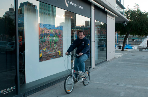 En la esquina de Pierina Dealessi y Trinidad Guevara, frente al más lindo de los diques, el cuatro, está la galería de arte Espacio Urbano Contemporáneo, la única del barrio. Abrió en mayo del año pasado (2012) y tiene un muy buen nivel de artistas en exposición. En estos momentos la muestra es “Alto Voltaje” de los artistas Duilio Pierri y Maggie de Koenigsberg. Los dos pisos (¡500 m2!) están dedicados a la pintura y la escultura. También expusieron artistas como Dora Isdatne o Raúl Díaz Mirante. La atmósfera es despojada – paredes negras, grandes ventanales, algún que otro sillón de diseño – pero sofisticada. Además es la galería con mejor vista de la ciudad: a los veleros del Yacht Club Puerto Madero y de fondo – pero lo suficientemente lejos para no contagiar su estrés, del otro lado de la frontera de agua – los edificios de Catalinas y el microcentro. De hecho, se escucha afuera un rumor distante de motores (algo similar al ruido urbano que se percibe desde un velero). “El circuito del otro lado del río está agotado y yo quería hacer algo diferente” explica a Maleva el owner de EUC Walter Hanono, con décadas de experiencia en galerías y sobre todo, en anticuarios. “Acá está llegando mucha gente de boca en boca – agrega – y en la última Gallery Night pasaron 400 personas”. Dato de color: algunos clientes entran a la galería en rollers.