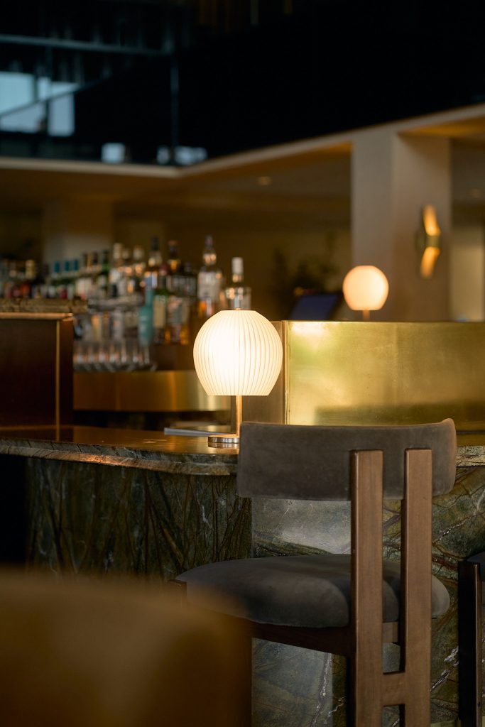 Su forma, tiene dos alturas y las butacas con ruedas para que puedas acercarlas. Y comer ahí, sin perder el registro de los bartenders. Al dejar abierto el techo me parece interesante que desde allí podés ver todo lo que pasa arriba y desde arriba podés ver la coreografía de los bartenders, que es algo que a mi me fascina. También por eso hicimos la ventana en la cocina, para mostrar el proceso de la paella, hasta que se termina en la parrilla. El protagonismo de la cabina le da lugar al DJ, lo que me permite combinar gastro con coctelería y diversión.