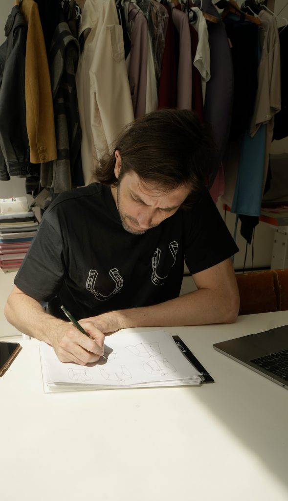 Lo que comenzó como una aventura académica, poco a poco se transformó en una carrera sólida. Para darle mayor impulso a su marca, Juan fue encontrando alianzas estratégicas: “Hice una alianza con un fabricante llamado Gaice Banks, que producía para varios diseñadores en Bélgica, como Haider Ackermann y otros”, comenta, destacando cómo esa colaboración le permitió dar un salto en calidad y visibilidad a nivel internacional.