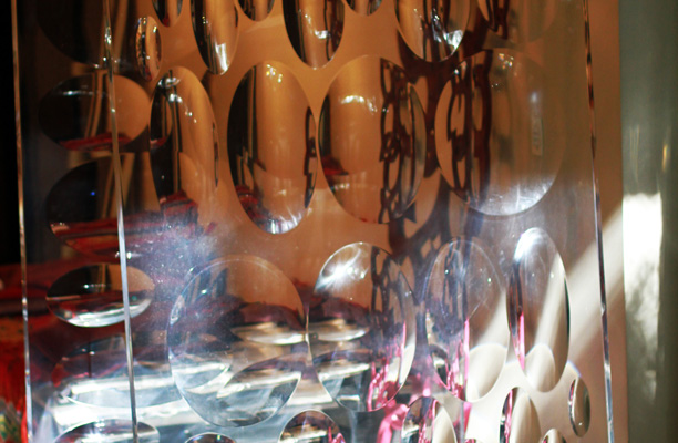 En 1965, la Cámara del Plástico convocó a varios artistas para hacer una muestra en el Museo de Bellas Artes. Mientras un ingeniero les mostraba los materiales, entre ellos el acrílico, Polesello tuvo una idea: usarlo para crear un efecto distinto. “Se me ocurrió unir un poco la teoría de Lucio Fontana, de querer ir a través de la imagen, de la obra, e incorporé la trama de los lentes de aumento a las piezas de acrílico. Al principio las hacía chiquititas. Después produje un montón de cosas que están en todo el mundo. El acrílico fue muy importante para mí obra”.