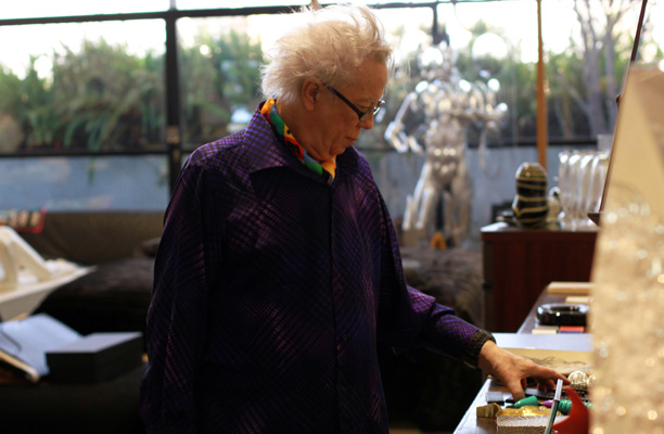 La risa de Rogelio Polesello (74) resuena en las salas de su casa-estudio en Belgrano. Viste zapatillas naranjas, pantalón violeta, camisa azul tornasolada, un pañuelo multicolor alrededor del cuello y lleva el pelo blanco peinado hacia arriba. En cada rincón acumula objetos curiosos que encuentra en sus caminatas por Once y el Barrio Chino, y que más tarde lo pueden inspirar para alcanzar el efecto óptico o el color que busca en algún cuadro o escultura. Juguetes, maniquíes, pulseras de mostacillas, etiquetas de botellas, pilas de diarios y revistas se apilan sobre todas las mesas y sillones. También cuadros –suyos y de otros artistas–, esculturas y piezas más pequeñas. “Soy un acumulador. Junto cosas porque me gusta, como un loco. Soy un torbellino, por eso tengo tanto despelote”, explica a Maleva.