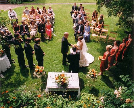 d) Resta: casamiento de día en jardines amplios. Aunque parece interesante para los invitados, para los novios la dispersión es un pain in the ass. Resulta imposible reunir a todos cuando se los necesita. Por ejemplo si se quiere proyectar un video de los novios haciendo la misma gesticulación ridícula en diferentes postales del mundo o bailar el vals o lo que fuere, hallarán que los invitados se están haciendo los Robinson Crusoe en lugares recónditos del jardín. Los invitados, con espíritu intacto de exploradores, salen a recorrer el verde y, dicen las malas lenguas, que muchos ni siquiera vuelven.