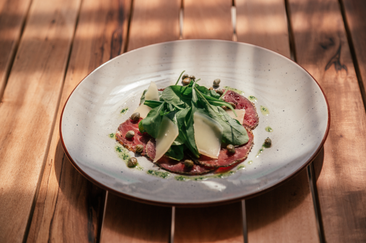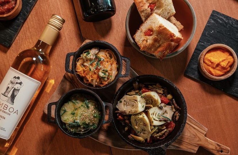 Para continuar con su línea de trabajo, apoyándose en gente del rubro con conocimiento y experiencia, dejaron la propuesta gastronómica en manos de Edward Holloway quien también está detrás de otros proyectos en Mendoza como el restaurante de Alfa Crux, de Fierro Hotel y Finca Agostino. La carta se presenta por pasos, como la mayoría de las bodegas de la zona de Cuyo, pero se distingue por estar pensada como un “tapeo”; los platos, de porciones más pequeñas, se van sirviendo en el centro de la mesa para compartir entre todos. De esa forma, la comida se convierte en un espacio de interacción y disfrute lento, pensado para durar un par (o pares) de horas.
