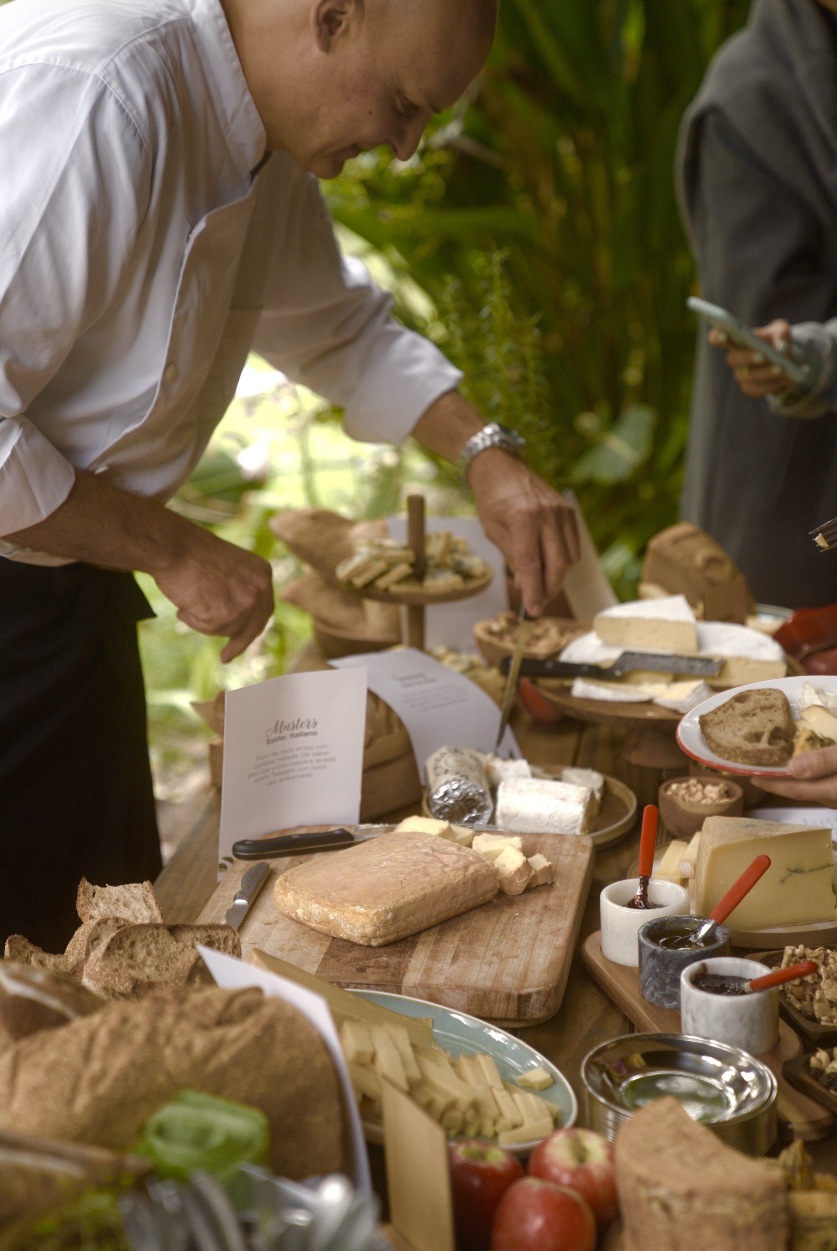 Empezamos con lo que cualquier persona consideraría “la mesa de sus sueños”. Un banquete de quesos de todas las texturas y tonalidades, desde un Brie más clásico hasta un “Patagonzola”, creación de autor de la quesería Ventimiglia, oriunda de Cipoletti, que fue la que nos acercó esta belleza en todos los sentidos. Frutos secos, dulces caseros y panes terminaron de completar la mesa y las sidras acompañaron la recepción. Le di en la tecla porque elegí la ideal para este momento; la Demi Sec, la más elegante, simil a un vino blanco que va perfecto con la comida.