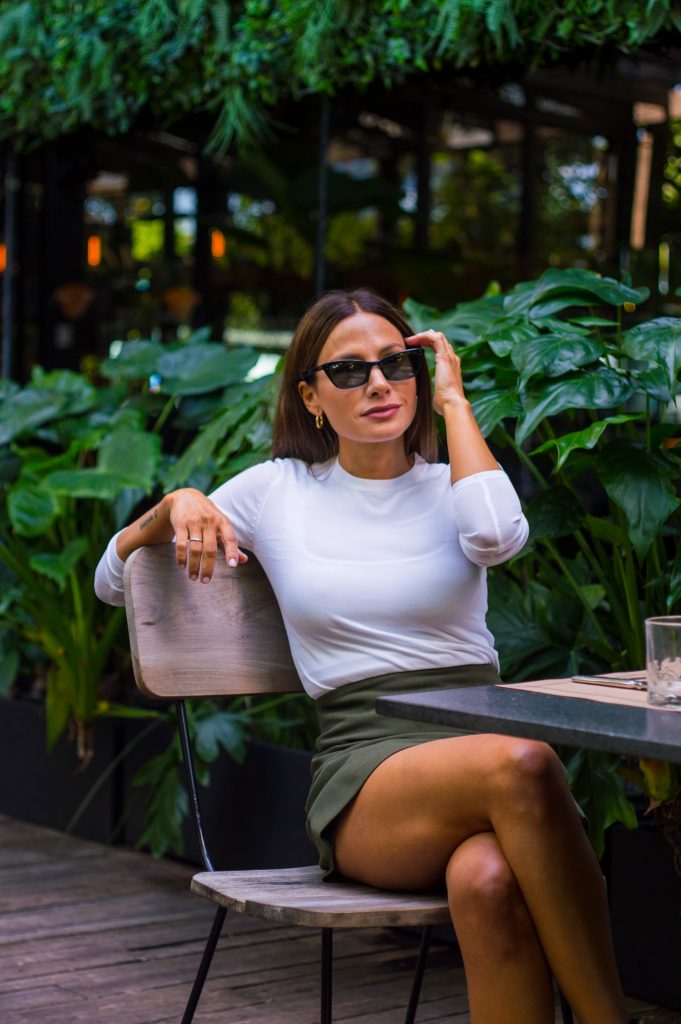 Es una mañana otoñal, para ser exacta, el primer día de la nueva estación. Hay solcito, pero la brisa del Río de La Plata hace lo suyo y enseguida refresca, como es habitual en Costanera. Tefi Russo, cocinera y creadora de contenido, llegó a la entrevista con su característica sonrisa y luciendo una pollera verde oscuro, sweater finito blanco, botas texanas y unos cancherísimos anteojos de sol negros. Enseguida, nos ubicamos en una de las cómodas mesas de la terraza del restaurante Happening, un clásico de todas las épocas que ella eligió especialmente para el encuentro.
