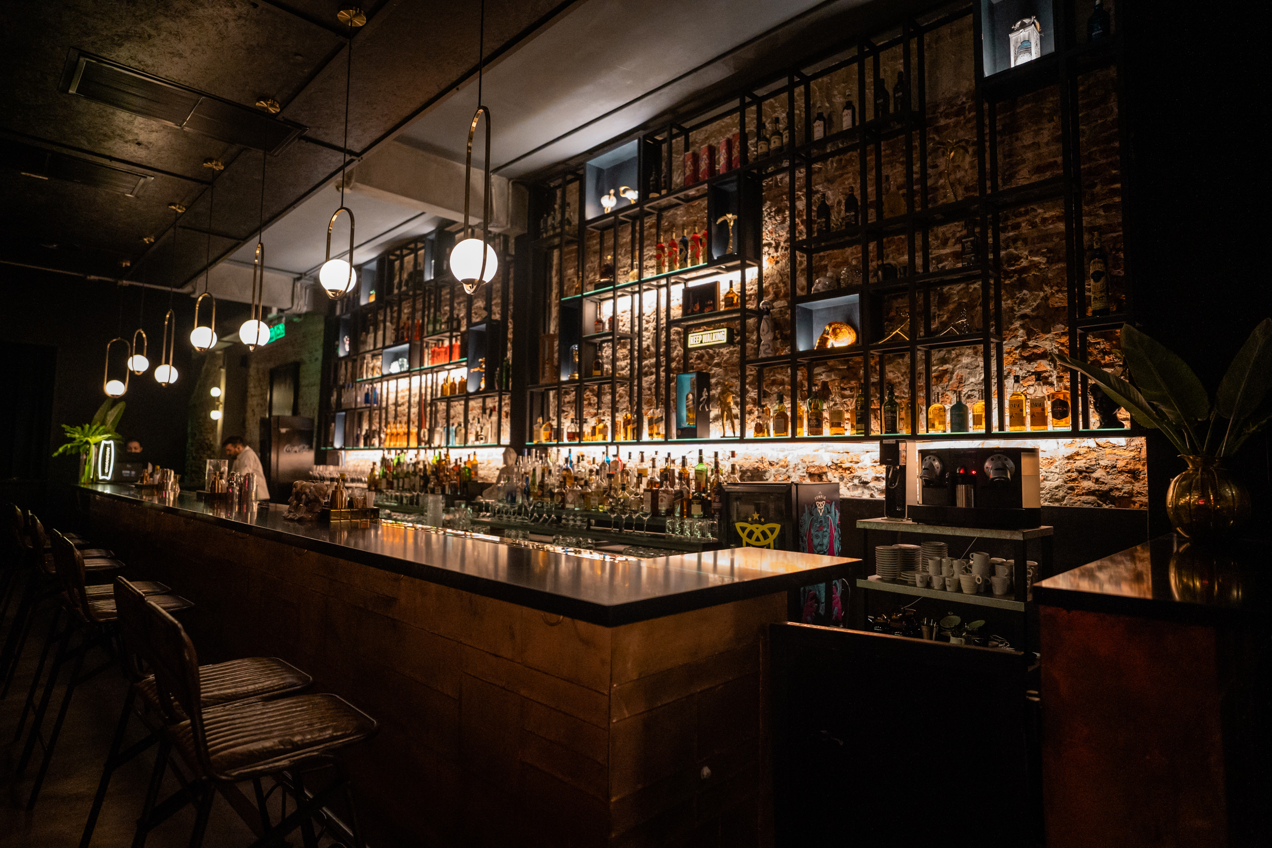 El bar de Mona Gallosi te sorprende por su impronta neoyorquina y el glam bien arriba, con luces bajas y neones. Podés perderte en sus distintos espacios, hundirte un buen rato en uno de sus sillones Chesterfield, escuchar buena música y probar su tataki de atún rojo, para maridarlo con mocktails como “la Piñada”, con piña, tomillo, soda y limón, o “la Naranjada”, con naranja, frambuesa, huacatay y limón.