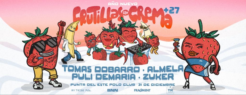 “Recibimos el 2025 de la manera más dulce” indica el slogan de la fiesta de fin de año Frutillas con Crema que se realizará en el Polo Country Club, a medio camino entre José Ignacio y Manantiales. El lineup de Djs promete baile hasta el amanecer: Tomás Dobarro, Almela, Puli Demaría y Zuker. Se venden tickets sueltos o mesas vip.