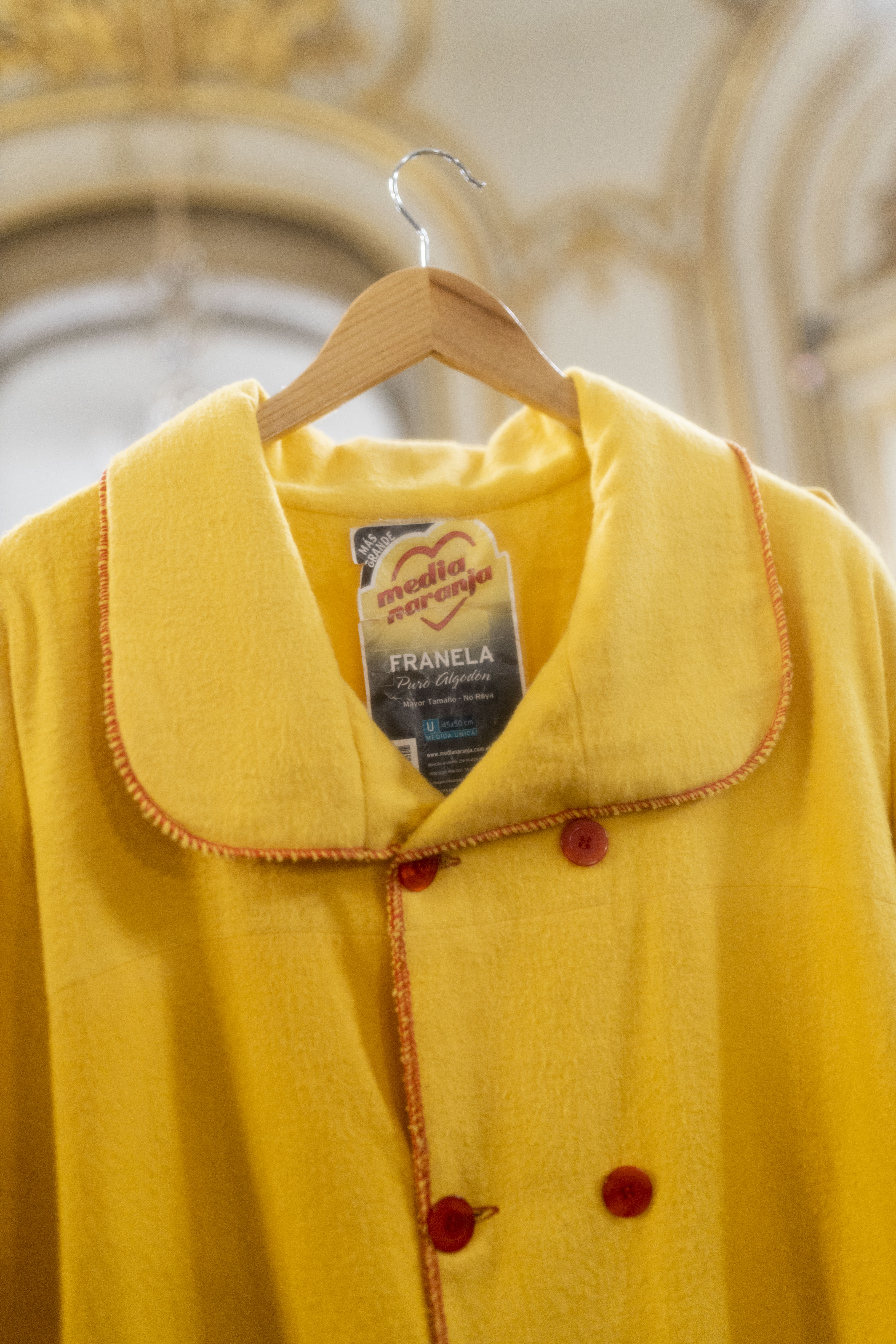 Esta colección de doce prendas de vestir, expuestas en el Salón de Baile, fueron confeccionadas con trapos domésticos, franelas, rejillas y repasadores y posan como “bailarines en la sala de La Bella y la Bestia”, según Gaspar. Para el autor, la obra revela el “deseo intrínseco del trapo por ser prenda” y el giro a objeto de deseo; “qué es lo que cada trapo quiere ser?”, se pregunta, “el paño para piso ‘nido de abeja’ quiso ser un clásico cárdigan inglés”. La cara sociopolítica que se entrevé en esta obra es, por un lado, la evidente referencia al trabajo de los “trapitos” o cuidacoches, y por el otro, la engorrosa prohibición de entrar y sacar legalmente obra de arte en este país. “Para esta obra, que fue exhibida en grandes ciudades como NYC y París, me pareció interesante generarla en formato indumentaria, justamente para poder entrar y salir con ella en mi propia valija; si la aduana me pregunta ¿esto qué es? Le contesto, mi vestuario”, dice de forma pícara. Así, toda la obra de Casa Tomada tiene muchas capas, algunas más superficiales y otras más profundas y críticas. Es muy interesante pinchar e indagar en todas sus caras.