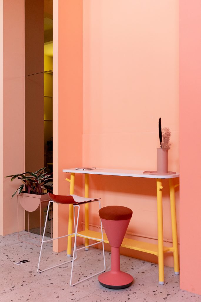 La temática de este año en Casa FOA es “el diseño comunica” y tomando ese punto como referencia es que Azul Gawianski y Manuela Ihan, de Estudio Acid, junto a Marina Christe, diseñadora de espacios y directora creativa, decidieron comunicar la manera en la que en las oficinas del futuro las líneas entre el trabajo y el ocio se desdibujan y pasan a ser un lugar para compartir momentos.