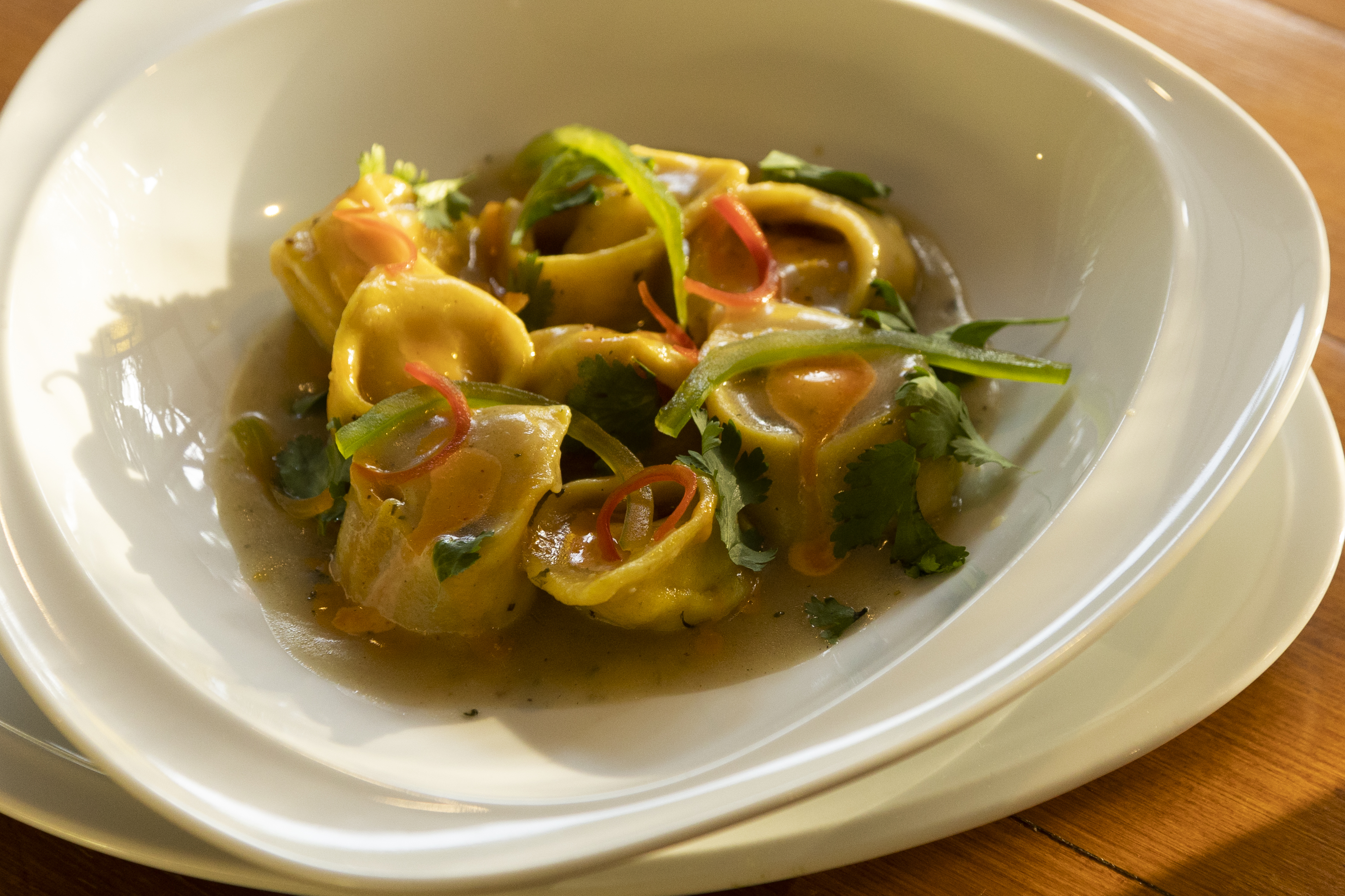 Y hablando de pesca. “Me gusta mucho cómo estamos haciendo la pesca del día”, responde Manuel cuando le pregunto qué plato destacaría esta temporada. “Este año hacemos mucha chernia, salmón blanco, anchoa de banco y un poquito de pez limón; lo servimos con un mosaico de puerro braseado y envuelto en alga nori, y va con una crema de castaña de cajú, con un hinojo braseado – ese toque anisado con el pescado a mi me encanta – y con un fumet.”
