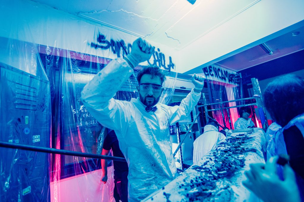 Otra de las propuestas que más llamó la atención de todos fue la de Chila ft. Acus y Kastiello, quienes nos vistieron con batas quirúrgicas para ingresar a su laboratorio mientras Pedro Bargero hacía su arte culinario frente a todos al mejor estilo Jackson Pollock. Él, sus compañeros, los músicos y la artista Camila Malvido de Encamarte nos hicieron bailar en un clima súper entretenido.
