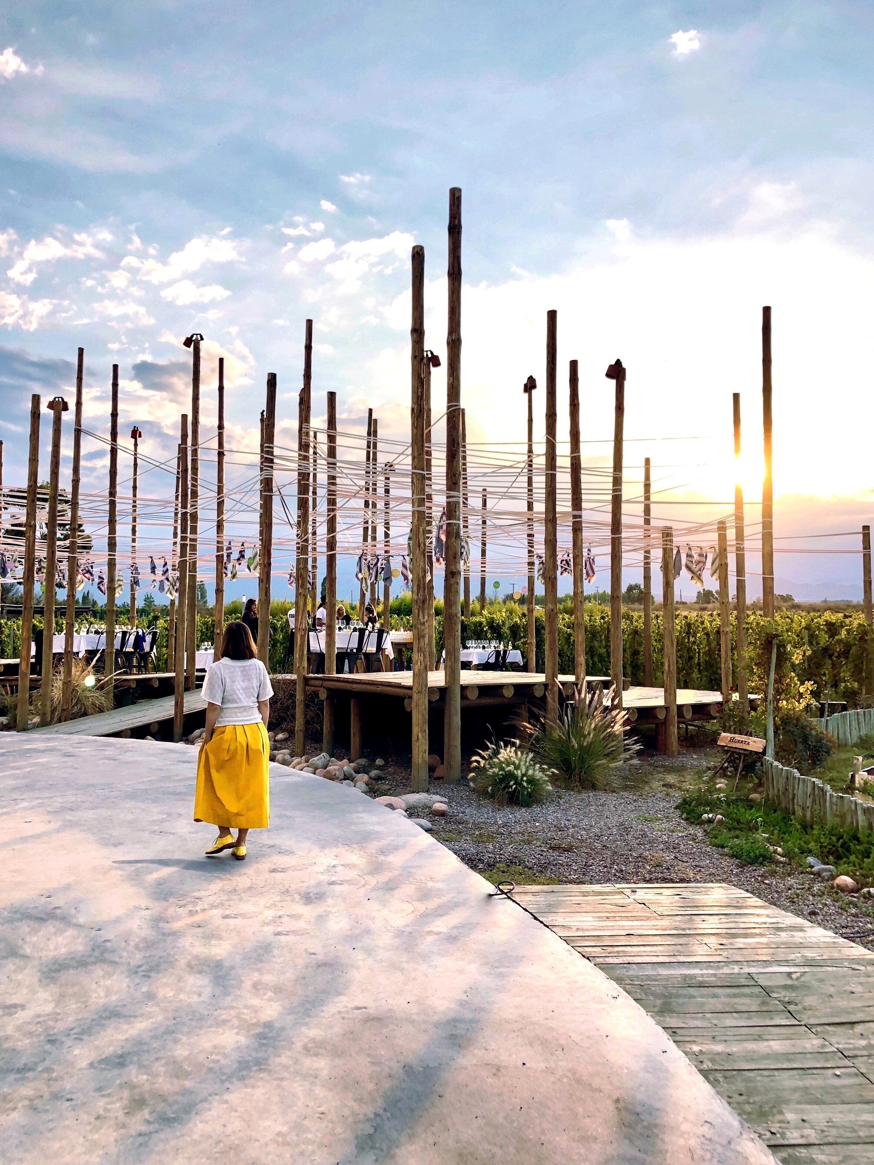 Pisos de piedra, plantas silvestres, viñedos y un deck de madera. Un edificio imponente  se alzaba en el centro del escenario y, de fondo, el horizonte delimitado por la cordillera expresaba cierto sentido de infinito.